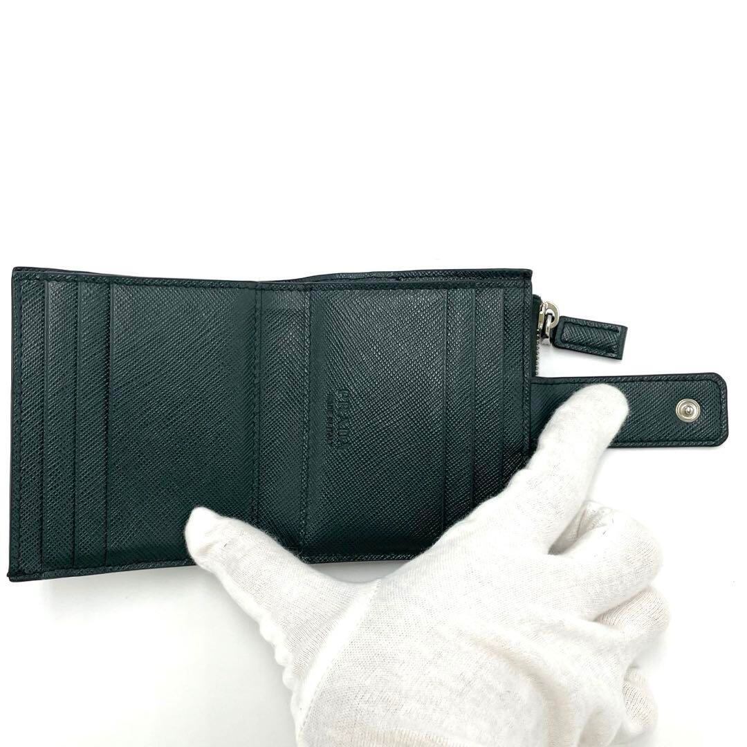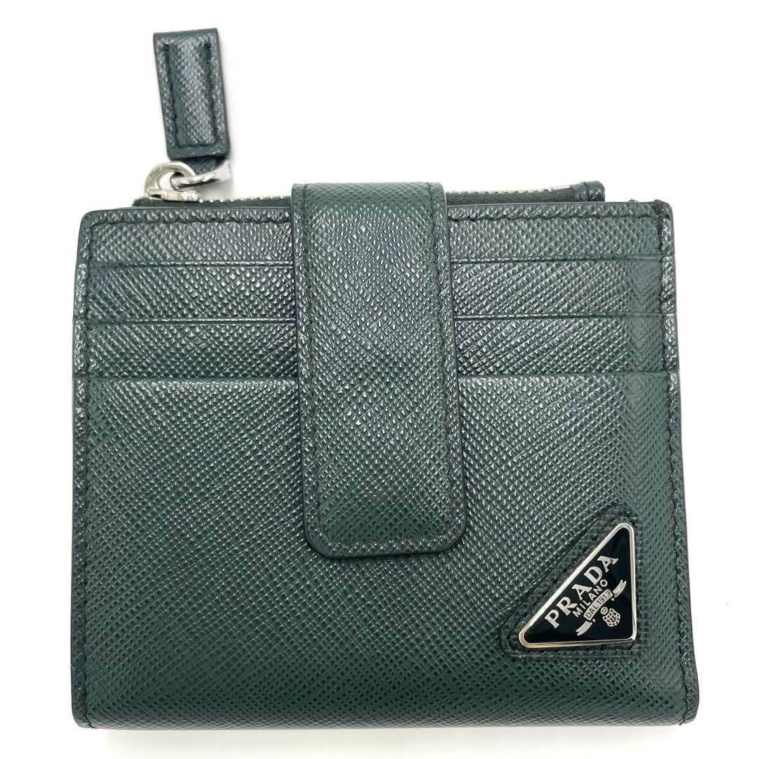 No.248 レア早い者勝ち☆【超美品】PRADA プラダ 二つ折り財布 カードホルダー 2MC066 サフィアーノ トライアングル グリーン 希少 メンズ