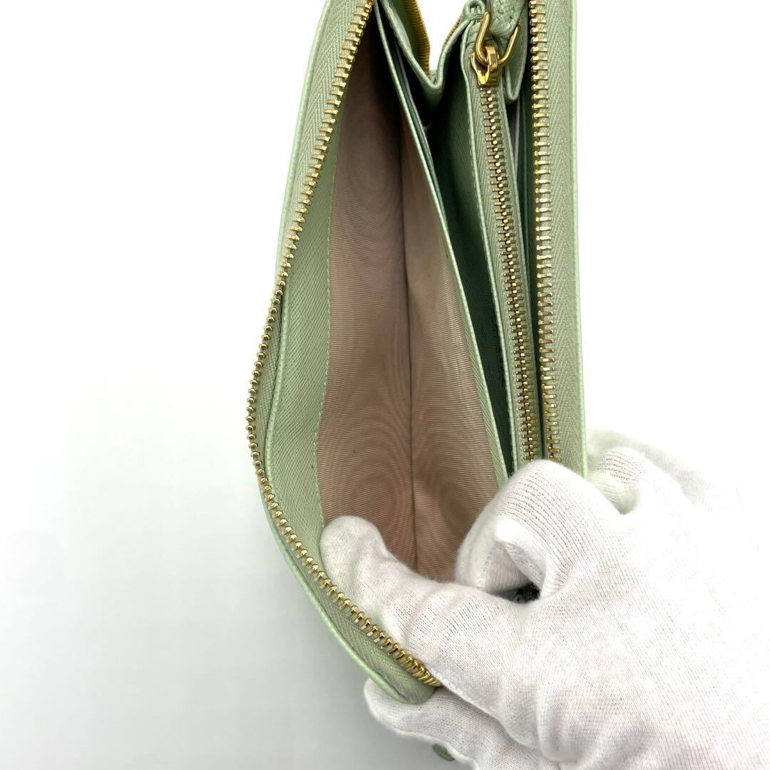 No.251 レア美品☆PRADA プラダ サフィアーノ 長財布 1ML506 ラウンドジップ マルチカラー マルティック ライトグリーン 希少 レディース ユニセックス