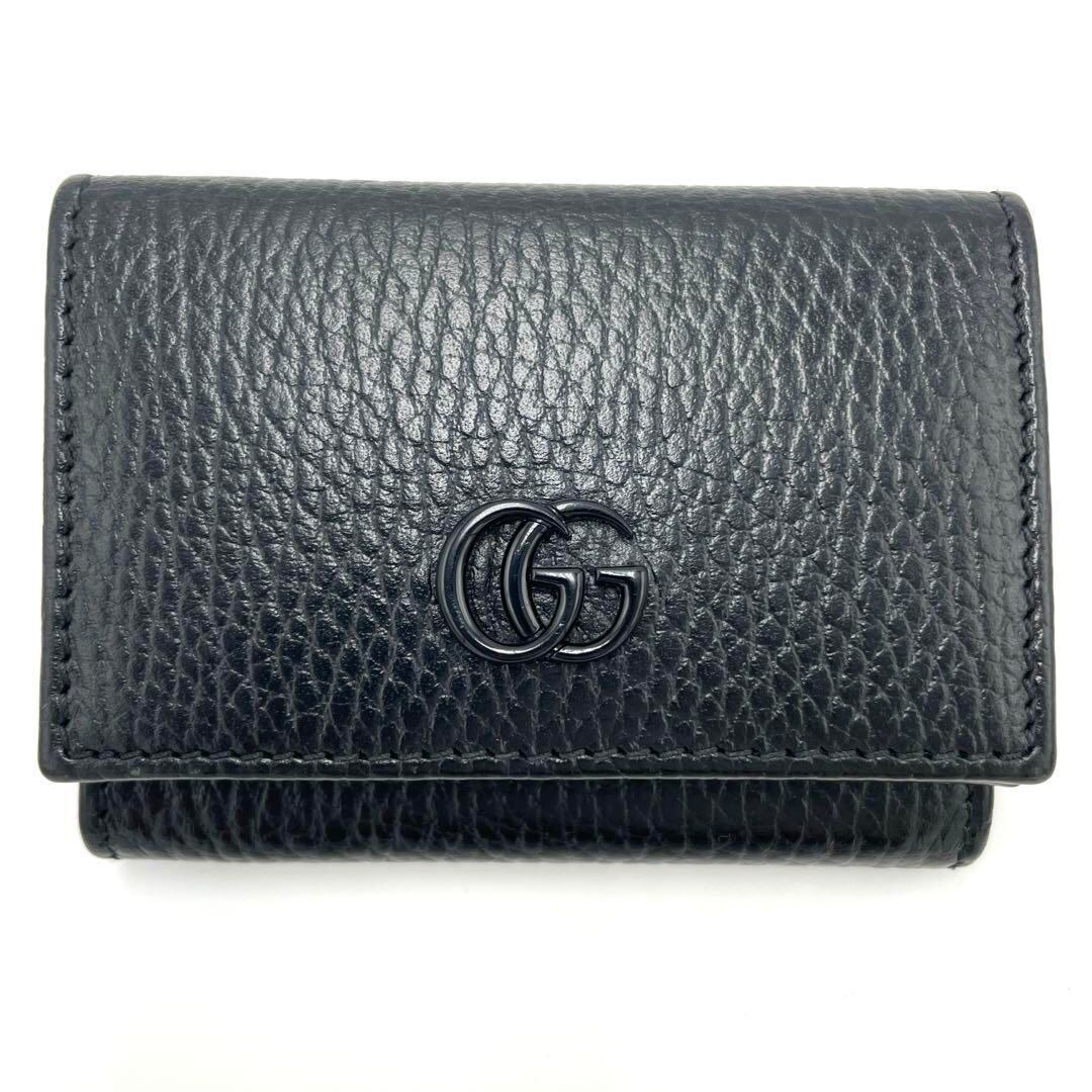 No.264 希少【超美品】グッチ GUCCI 三つ折り財布 ダブルG コンパクトウォレット 735212 ブラック レア品 メンズ レディース ユニセックス