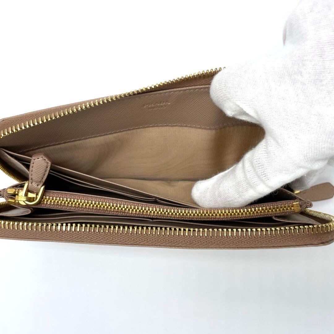No.266 人気☆希少☆PRADA プラダ 長財布 1M0806 サフィアーノメタル ラウンドファスナー ラウンドジップ ピンク ベージュ レディース