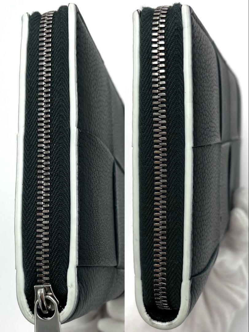No.275 希少レア美品☆ボッテガヴェネタ マキシイントレチャート カセット 長財布 ラウンドジップ ダークグリーン×ホワイト ユニセックス