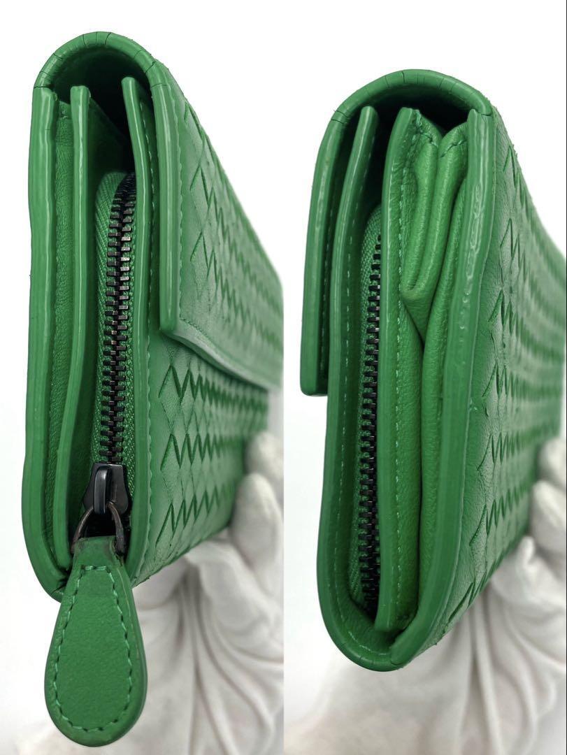 No.278 超人気☆【超美品】ボッテガヴェネタ イントレチャート 長財布 二つ折り財布 グリーン ラムスキン レザー レディース ユニセックス