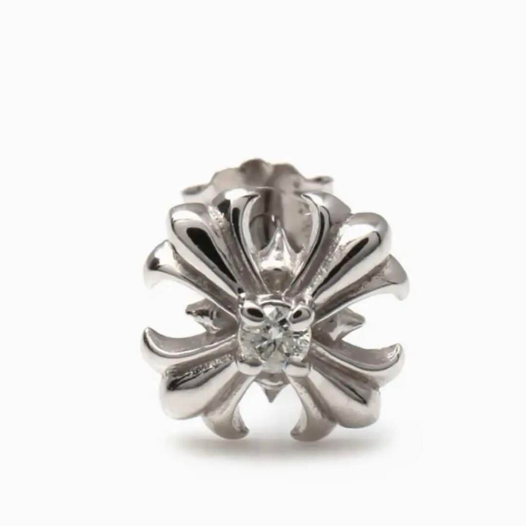 シルバー製の花形ピアス、中央にダイヤモンド石付き。