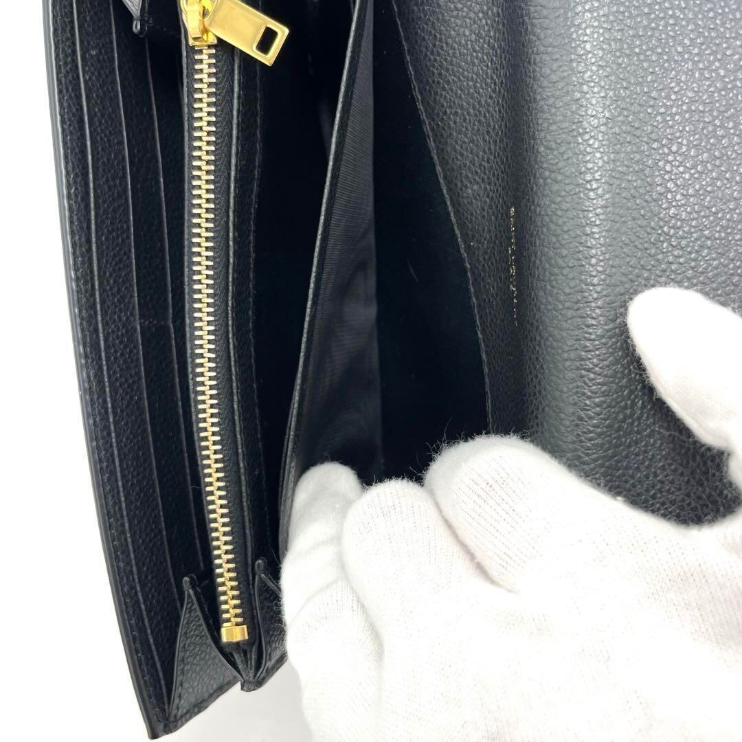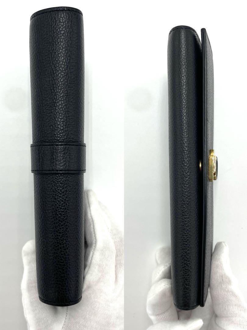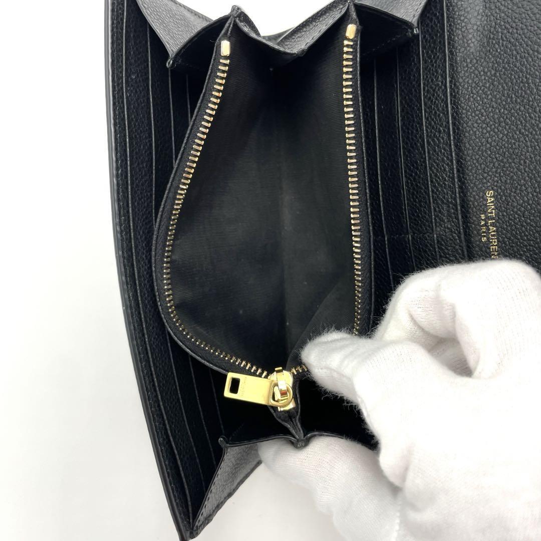 YSLのブラックレザー長財布、カードポケット付きで機能的。