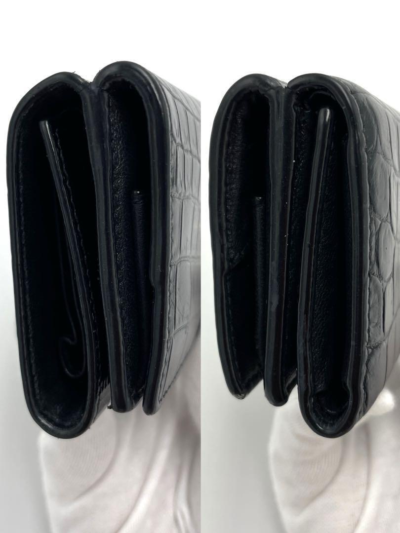 高級感あふれるクロコダイルレザー製の三つ折り財布。