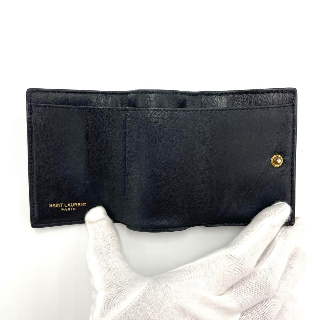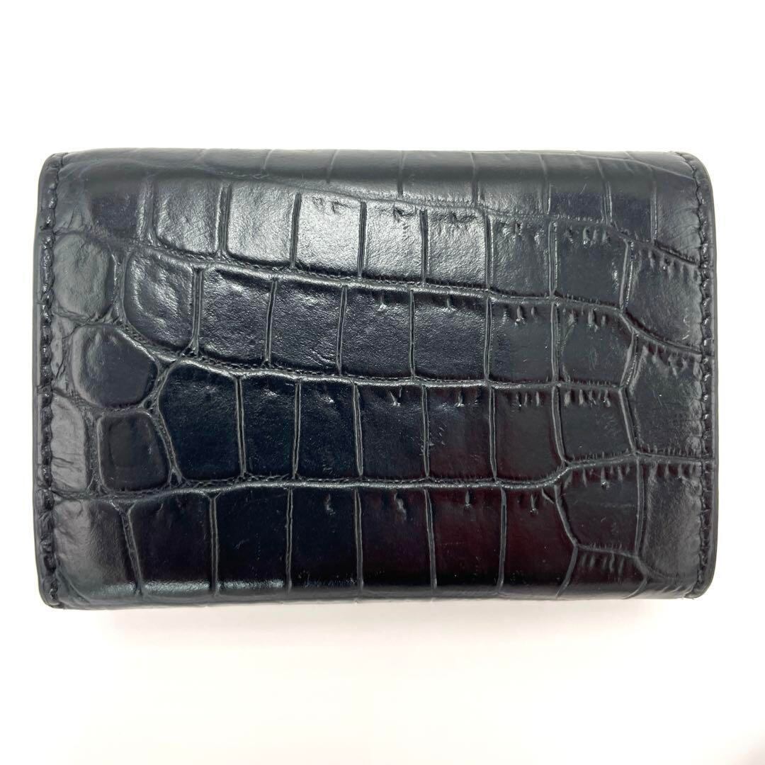 No.312 レア商品☆サンローラン 三つ折り財布 YSLライン クロコ型 685656 コンパクトウォレット ブラック レザー 希少 メンズ レディース ユニセックス