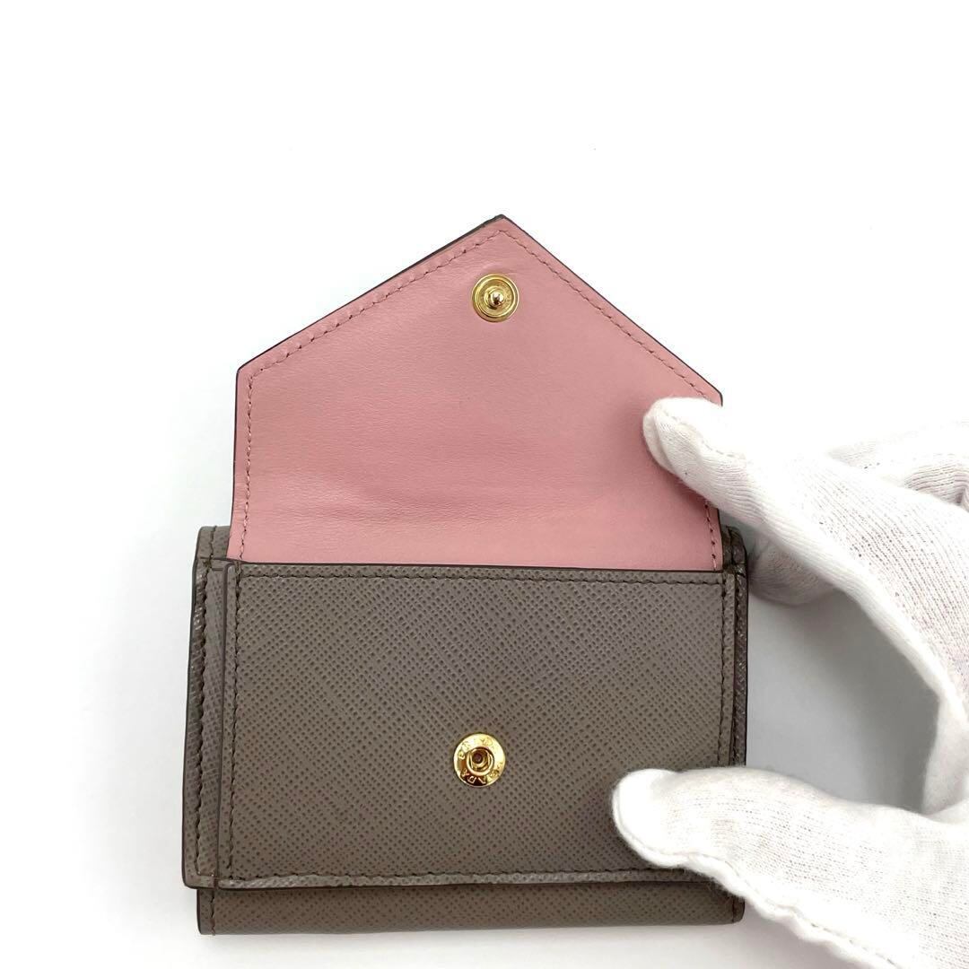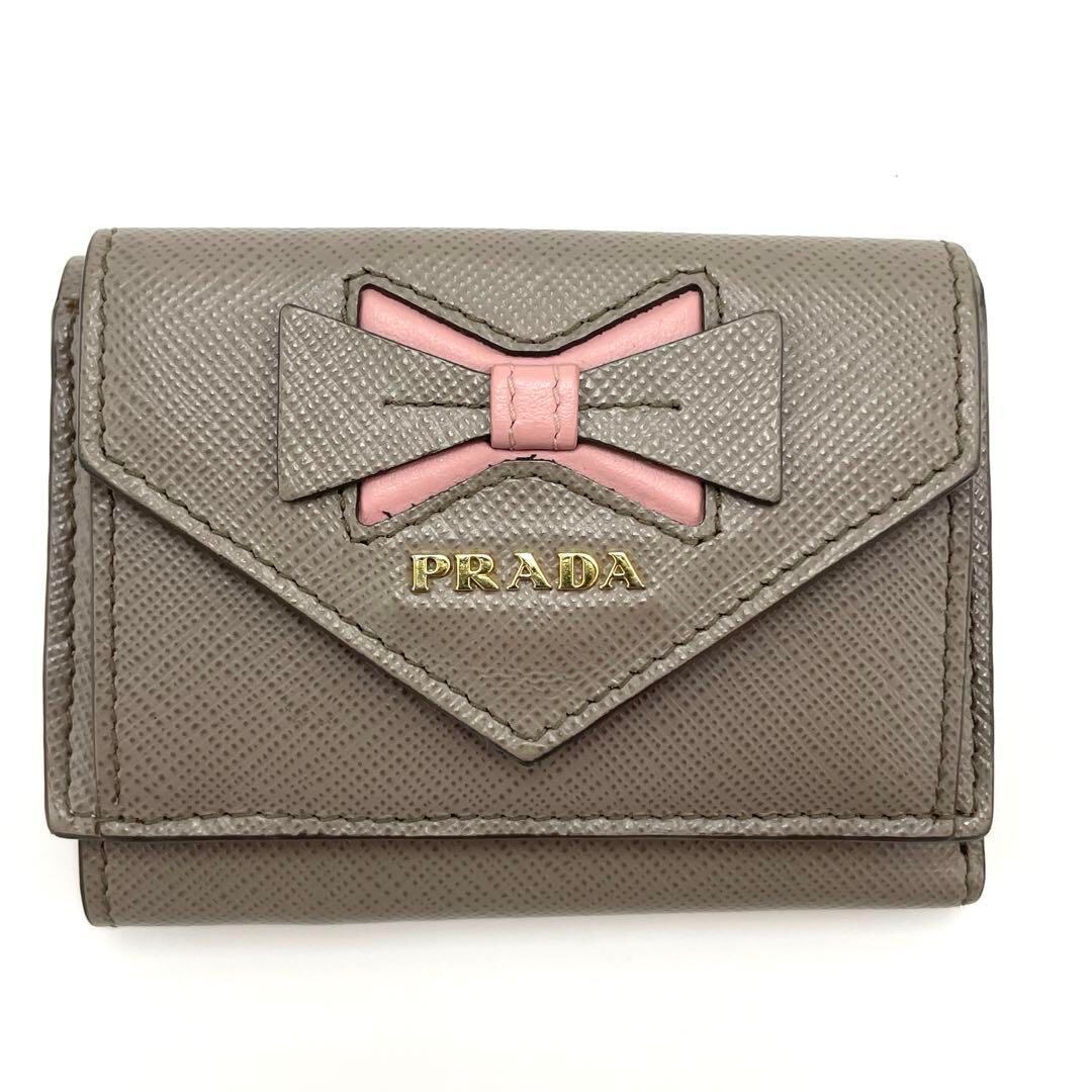 No.322 希少☆早い者勝ち☆美品☆PRADA プラダ サフィアーノ 三つ折り財布 1MH021 リボン クレイ×ピーチ コンパクトウォレット レディース