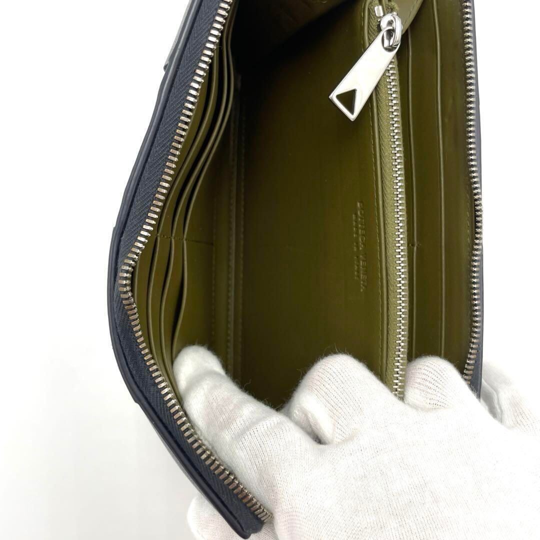 No.326 超人気 超美品☆ボッテガヴェネタ マキシイントレチャート 長財布 ラウンドファスナー ネイビー×カーキ マルチカラー メンズ レディース ユニセックス