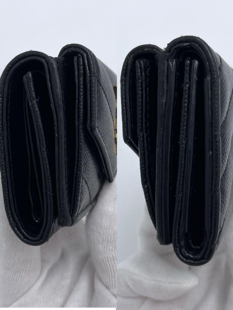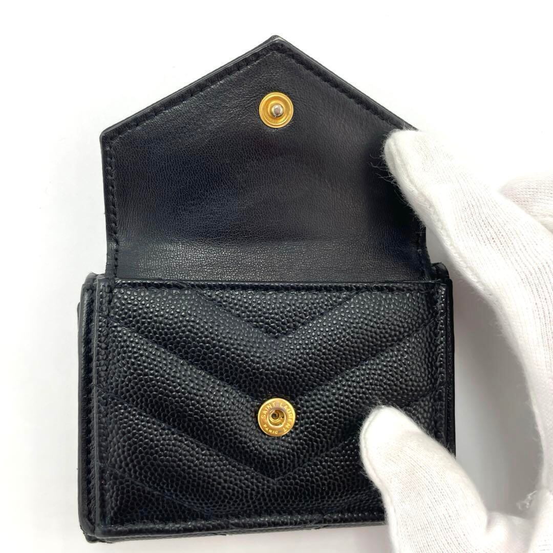 No.327 超人気☆【美品】サンローラン Vステッチ 三つ折り財布 タイニー カサンドラ YSLライン キャビアスキン ブラック コンパクトウォレット レディース レザー