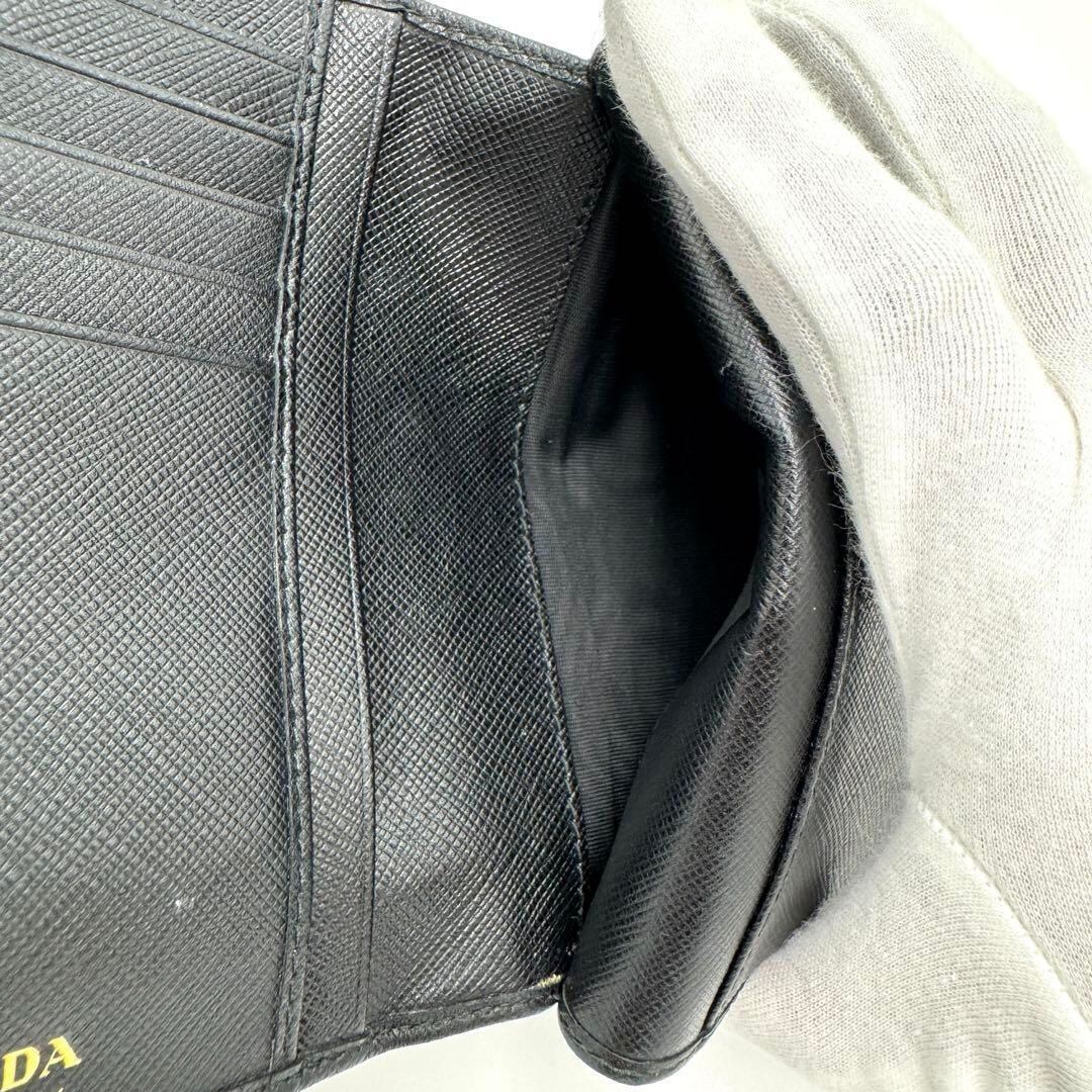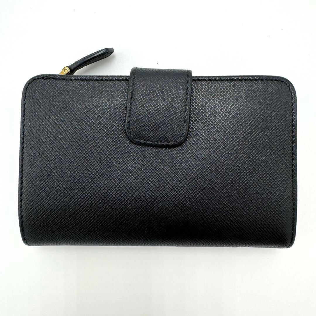 サフィアーノレザー製のブラック二つ折り財布、PRADAのエレガントなデザイン。