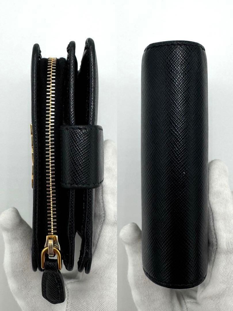 No.349 早い者勝ち☆【美品】PRADA プラダ サフィアーノ メタル 二つ折り財布 1ML018 コンパクトウォレット ブラック ゴールド レディース