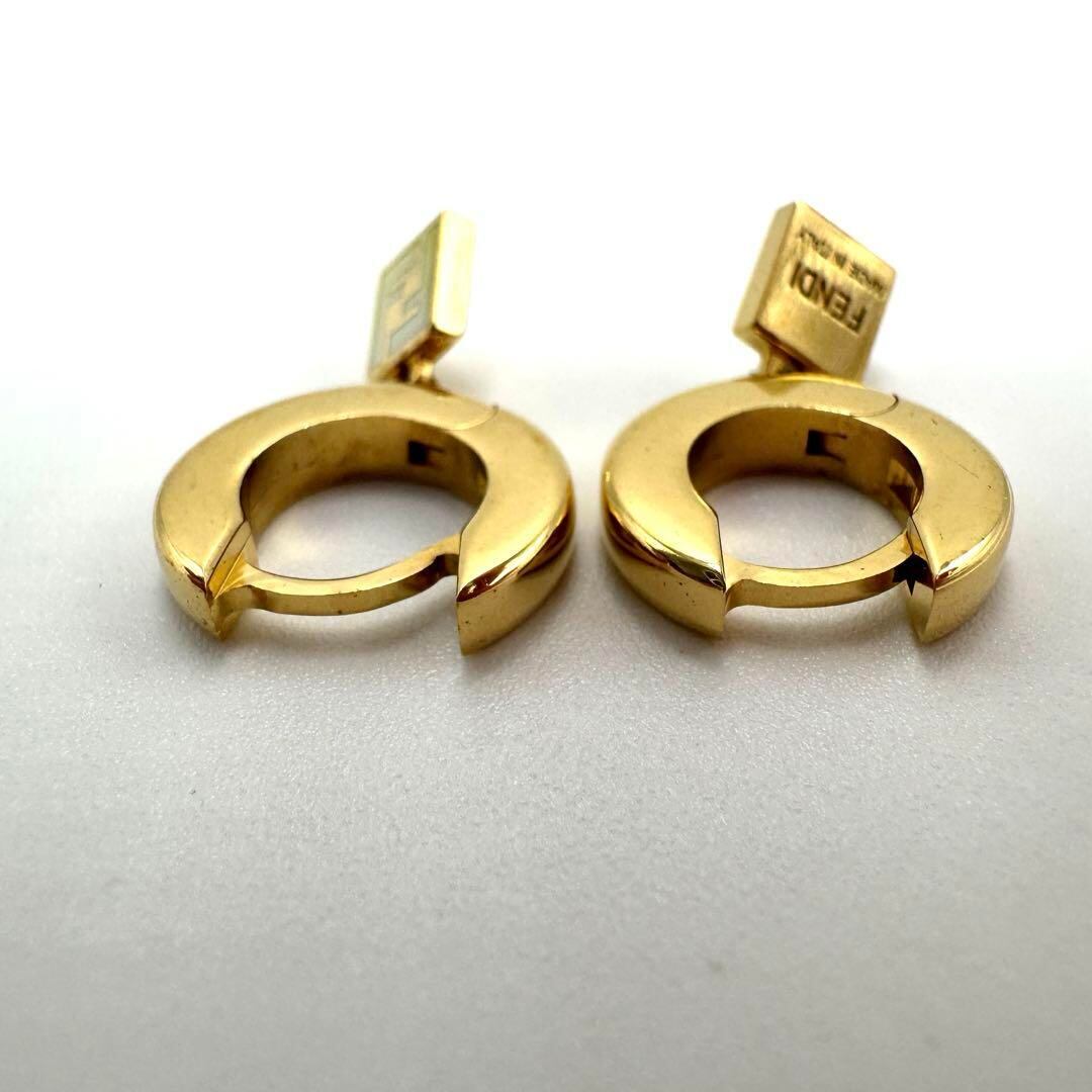 Fendiのゴールドフープピアス、ロゴ付きデザイン。