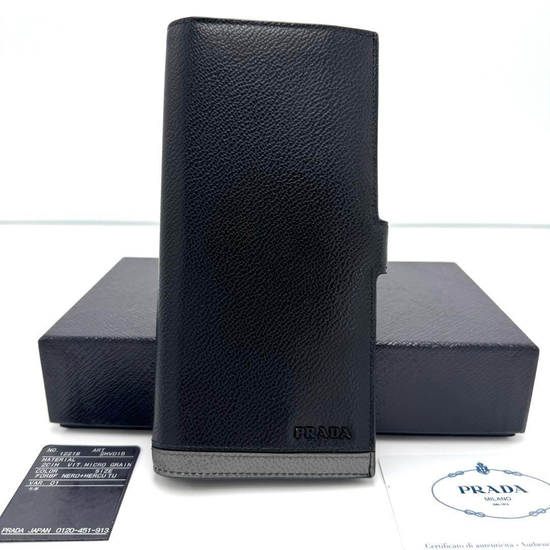 No.362 【希少レア美品】PRADA プラダ 長財布 ロングウォレット ヴィッテロマイクログレイン 2MV015 ブラック×グレー NFID搭載 メンズ