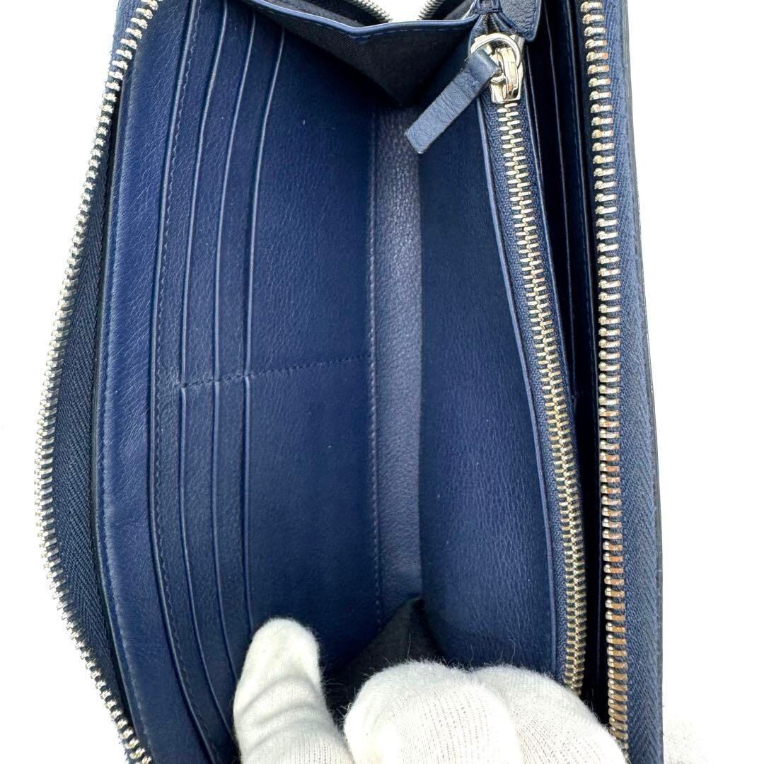 ネイビーのレザー製でCDロゴが特徴的な長財布。