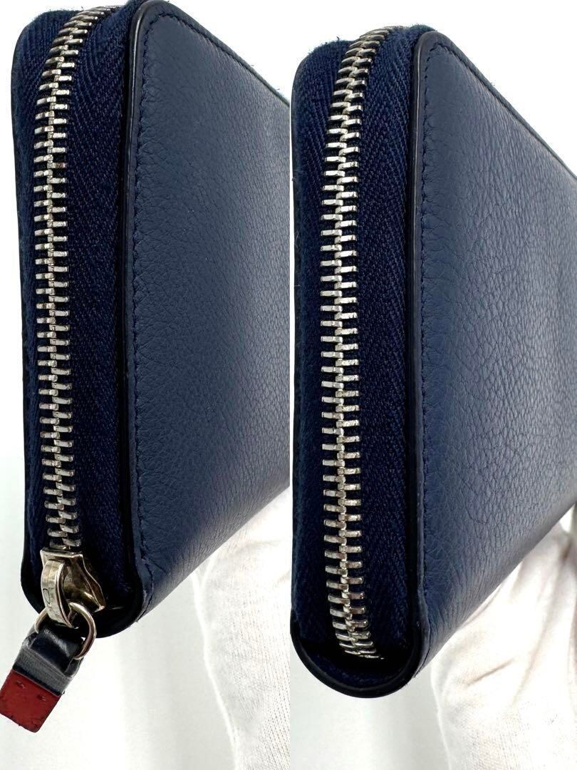 No.363 希少レア商品☆DIOR HOMME ディオールオム 長財布 CDロゴ ラウンドファスナー ネイビー×レッド レザー メンズ レディース ユニセックス