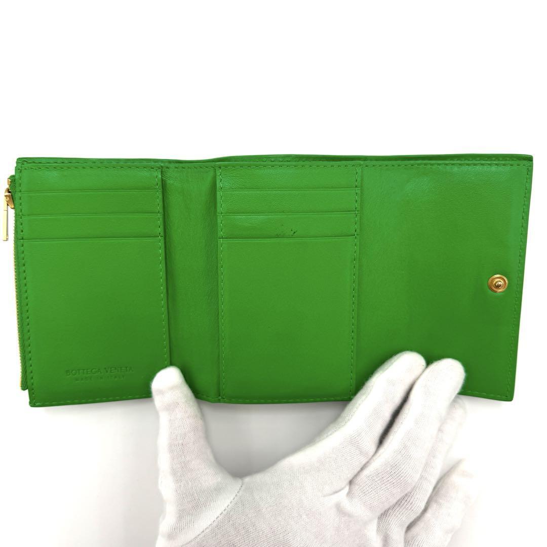 No.382 早い者勝ち☆美品☆ボッテガヴェネタ マキシイントレチャート カセット 三つ折り財布 グリーン パキラート レディース ユニセックス
