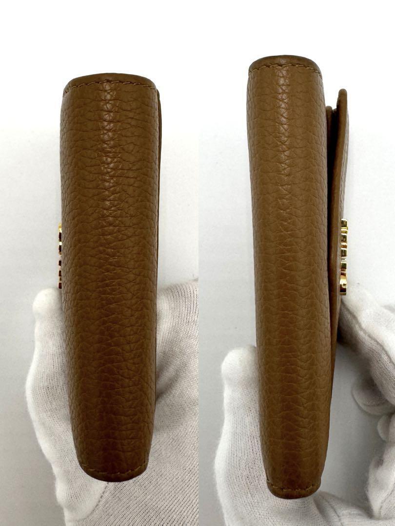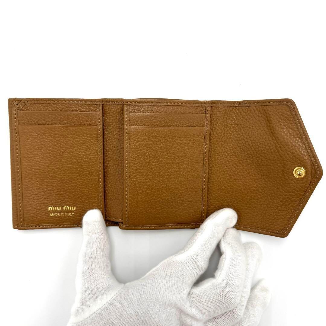 No.383 早い者勝ち☆【美品】MIU MIU ミュウミュウ 三つ折り財布 キャラメル ブラウン 5MH040 レザー コンパクトウォレット レディース