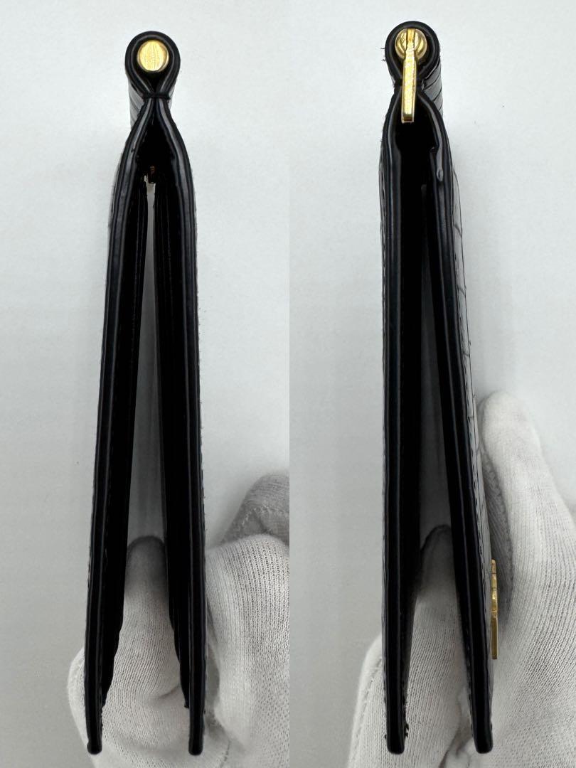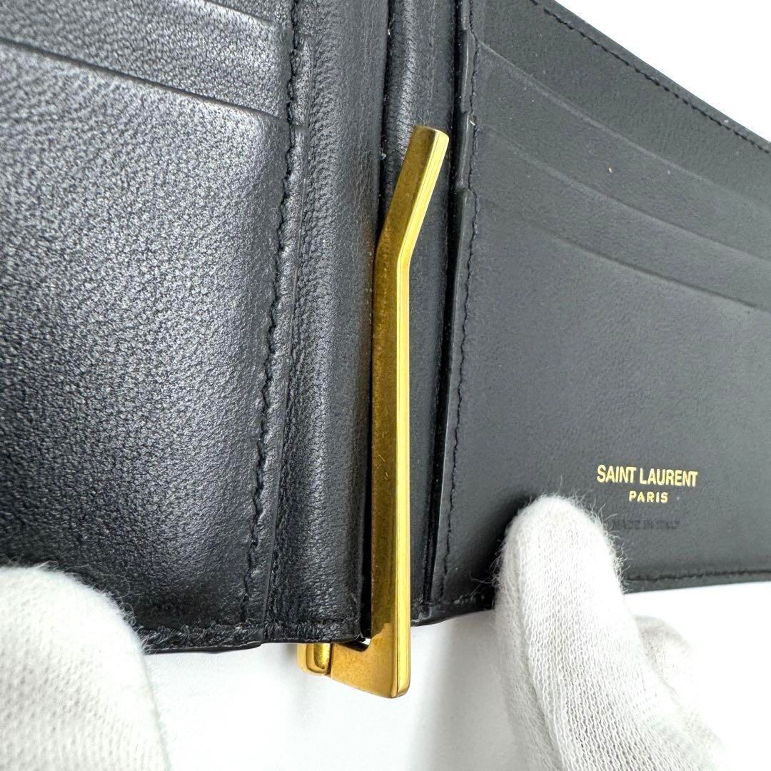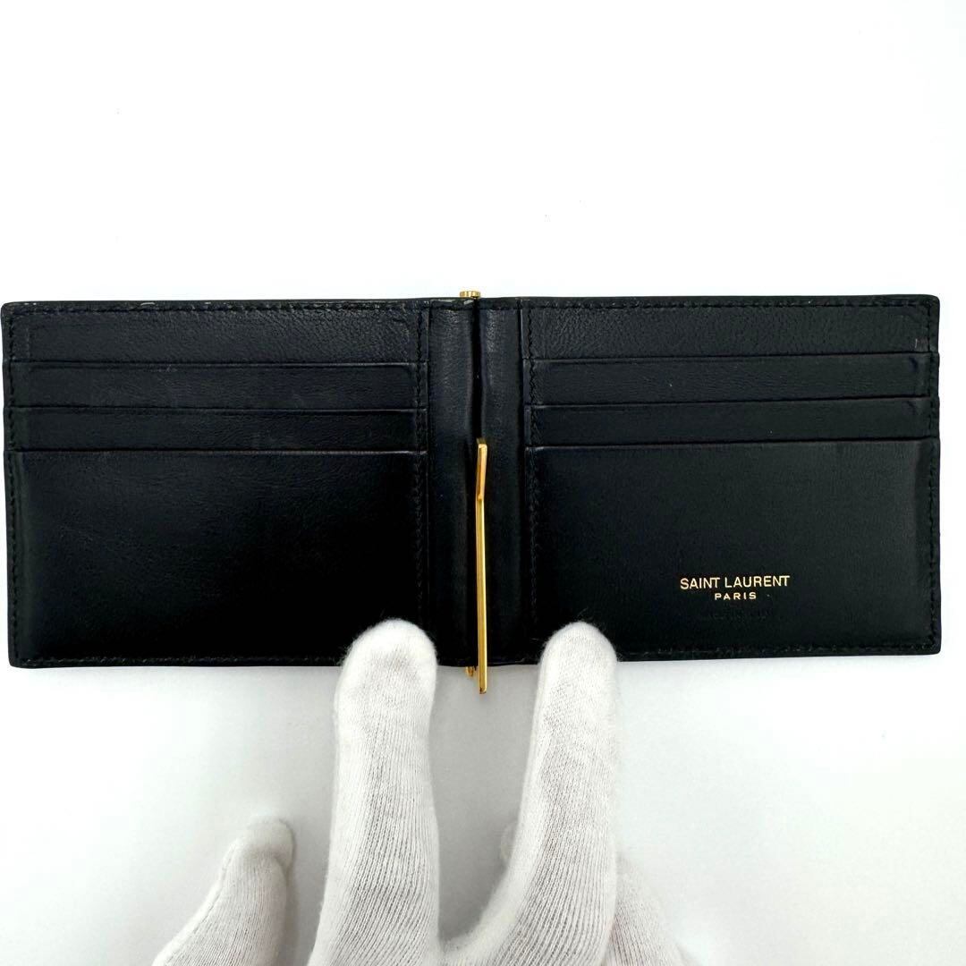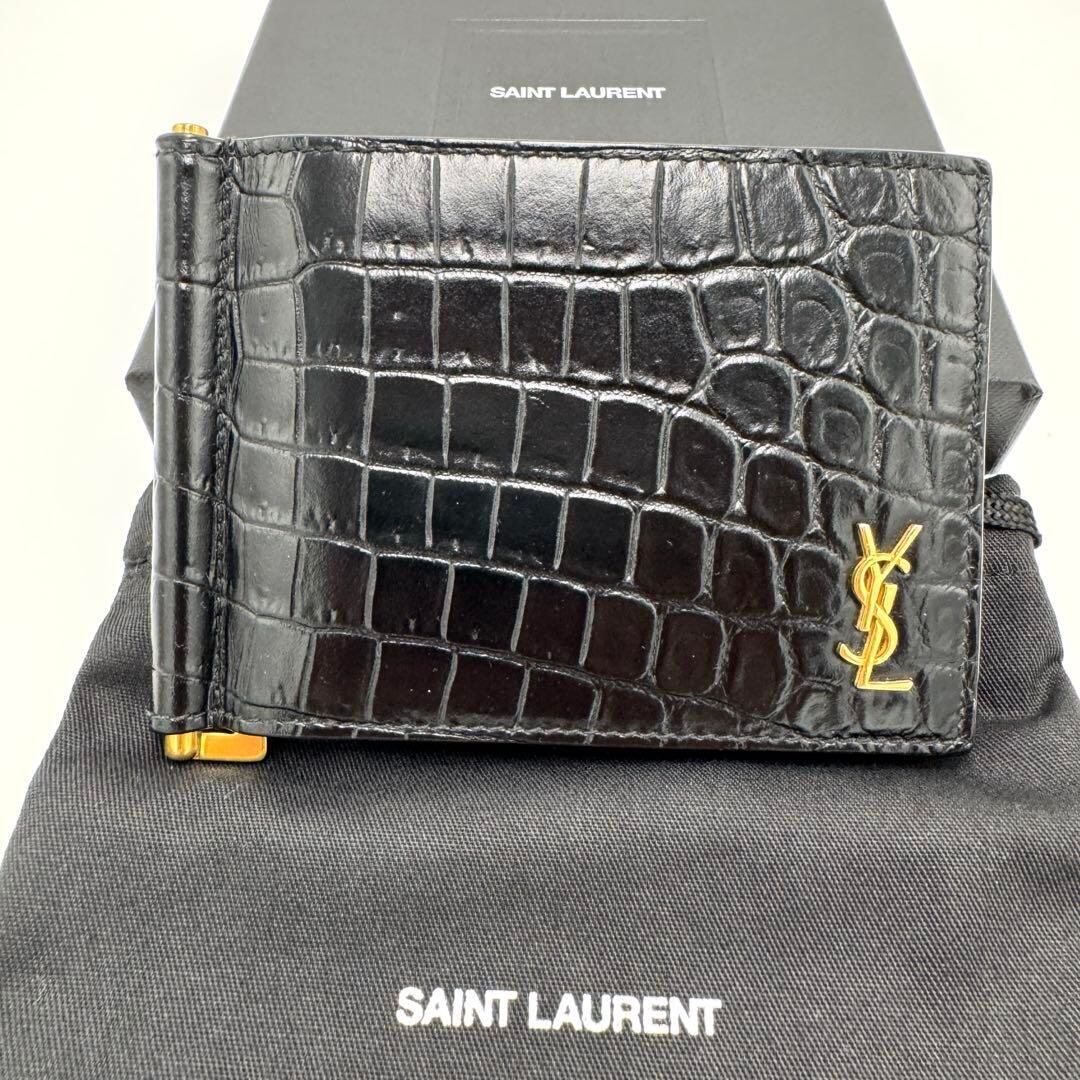 No.390 早い者勝ち☆【美品】サンローラン マネークリップ クロコ型押し タイニー カサンドラビルクリップウォレット 607738 ブラック メンズ レディース ユニセックス