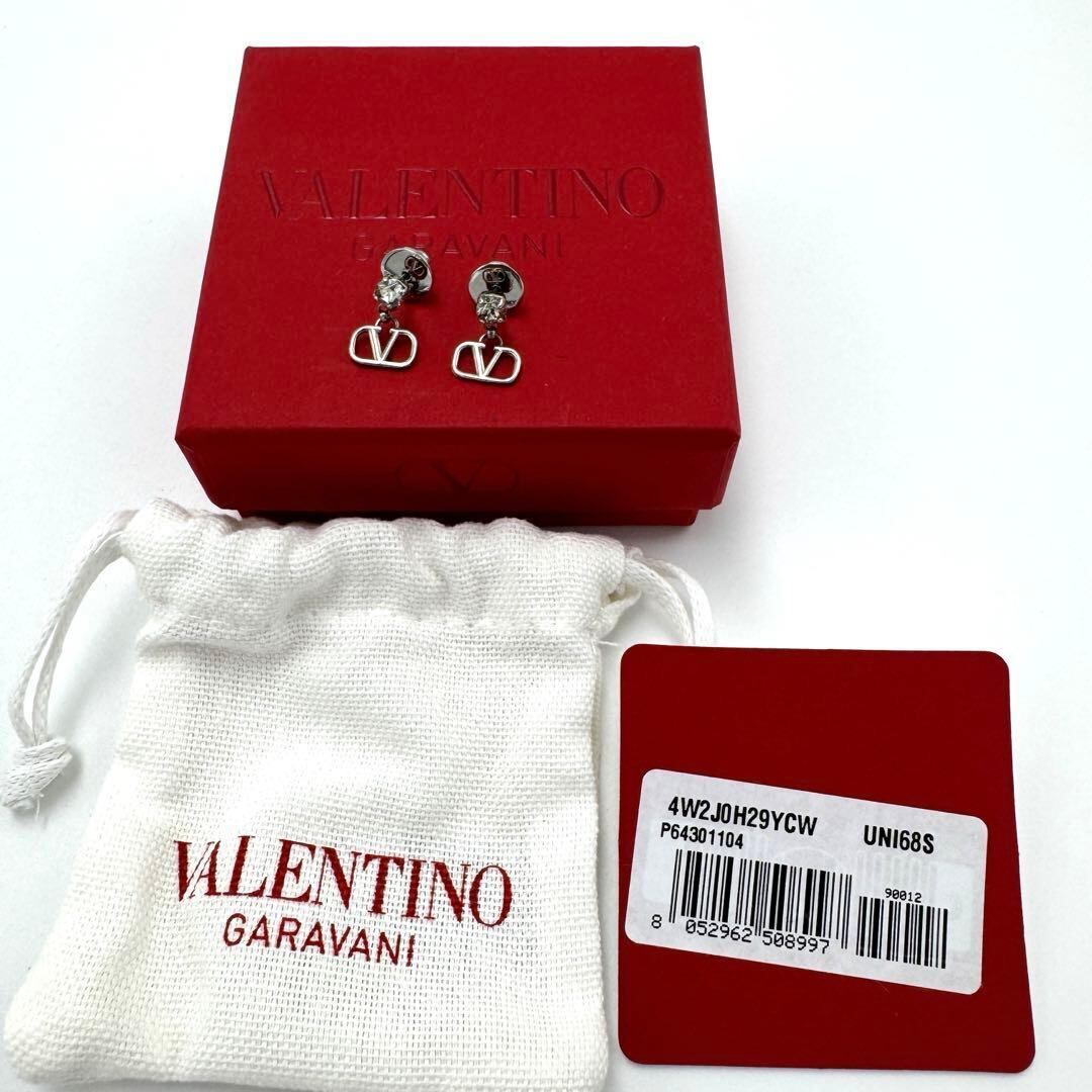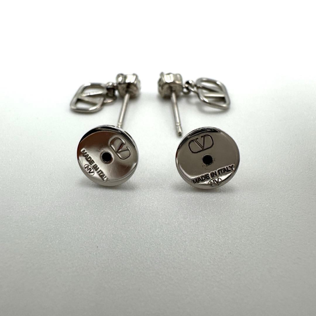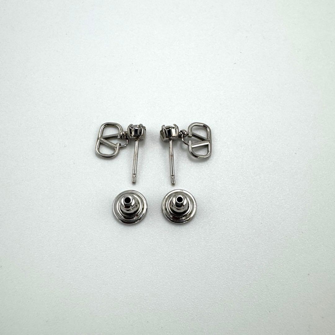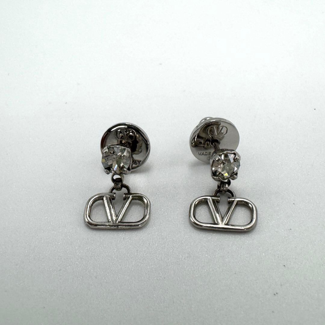 No.403 希少☆【超美品】ヴァレンティノ ガラヴァーニ Vロゴ シグネチャー ピアス ラインストーン シルバー アクセサリー レディース レア