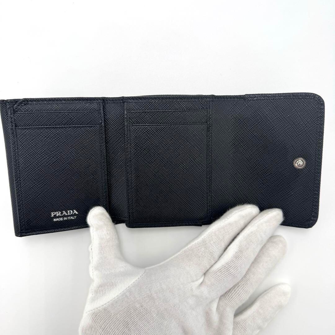 No.405 超人気【美品】PRADA プラダ サフィアーノ トライアングル 三つ折り財布 1MH043 コンパクトウォレット メンズ レディース ユニセックス ブラック