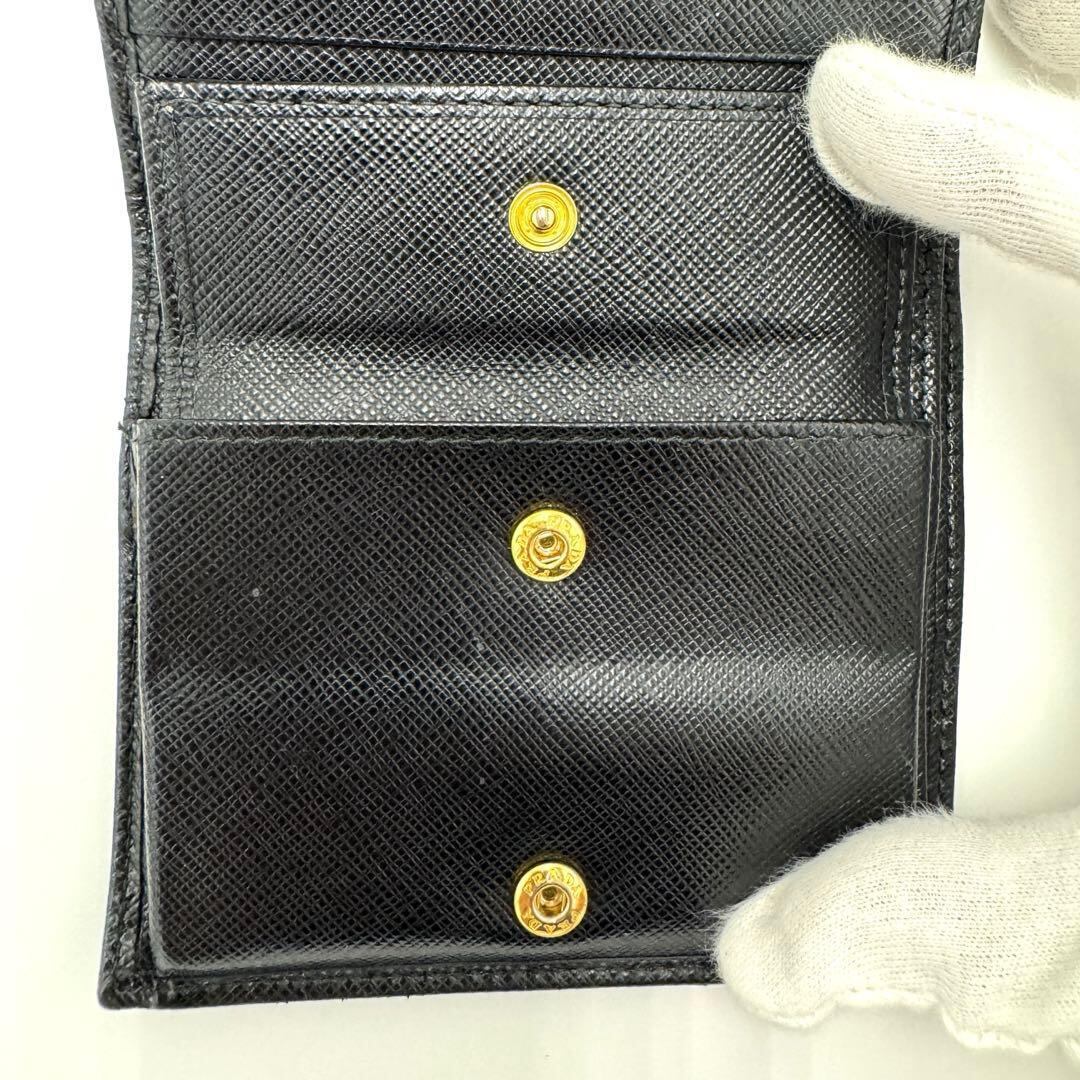 No.411 早い者勝ち☆【美品】PRADA プラダ サフィアーノメタル 二つ折り財布 1MV204 コンパクトウォレット ブラック レザー レディース