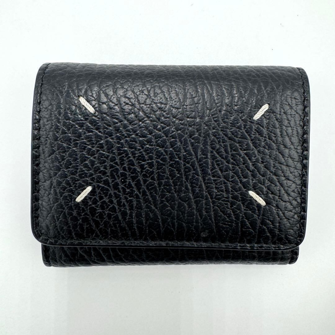 No.418 超人気☆美品☆Maison Margiela メゾンマルジェラ 4ステッチ 三つ折り財布 コンパクトウォレット シボ革 ブラック メンズ レディース ユニセックス