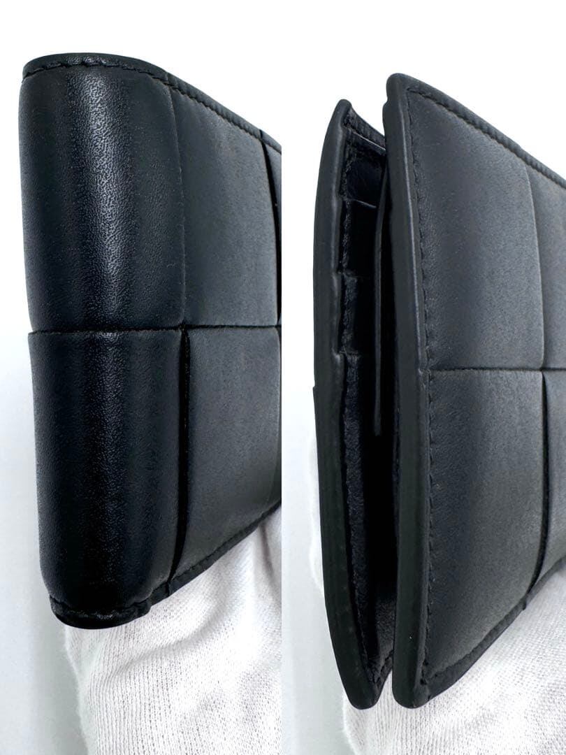 BOTTEGA VENETAのブラックキルティング二つ折り財布。