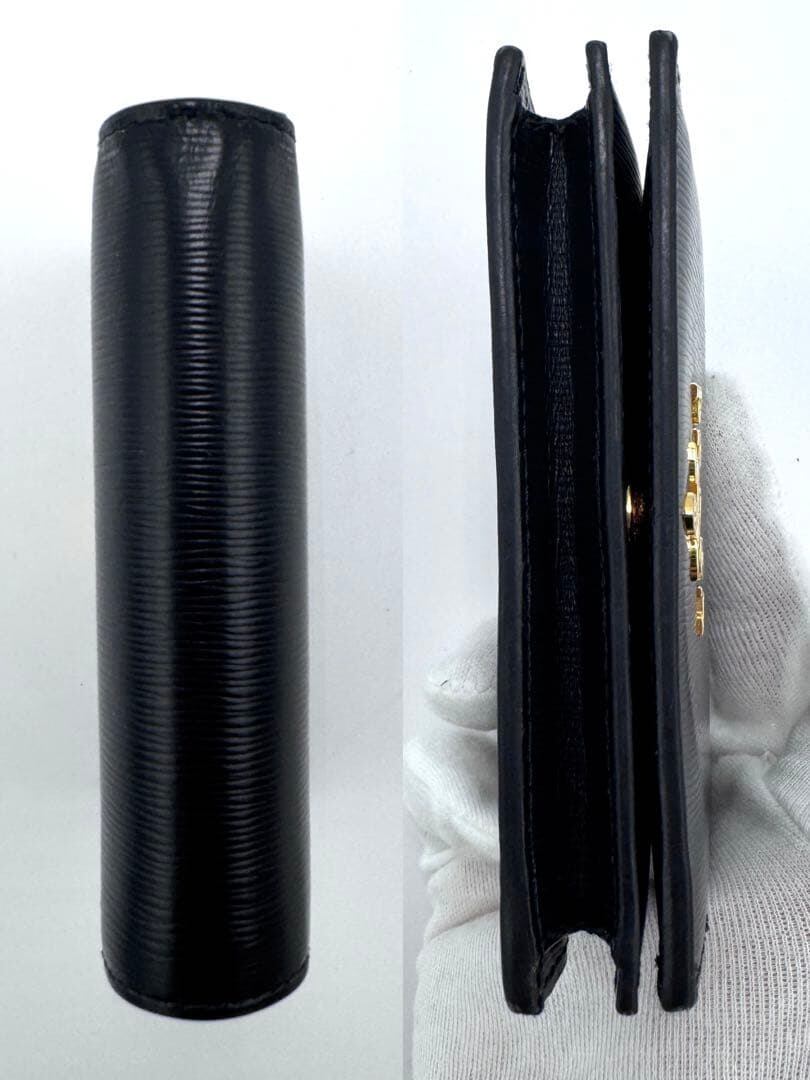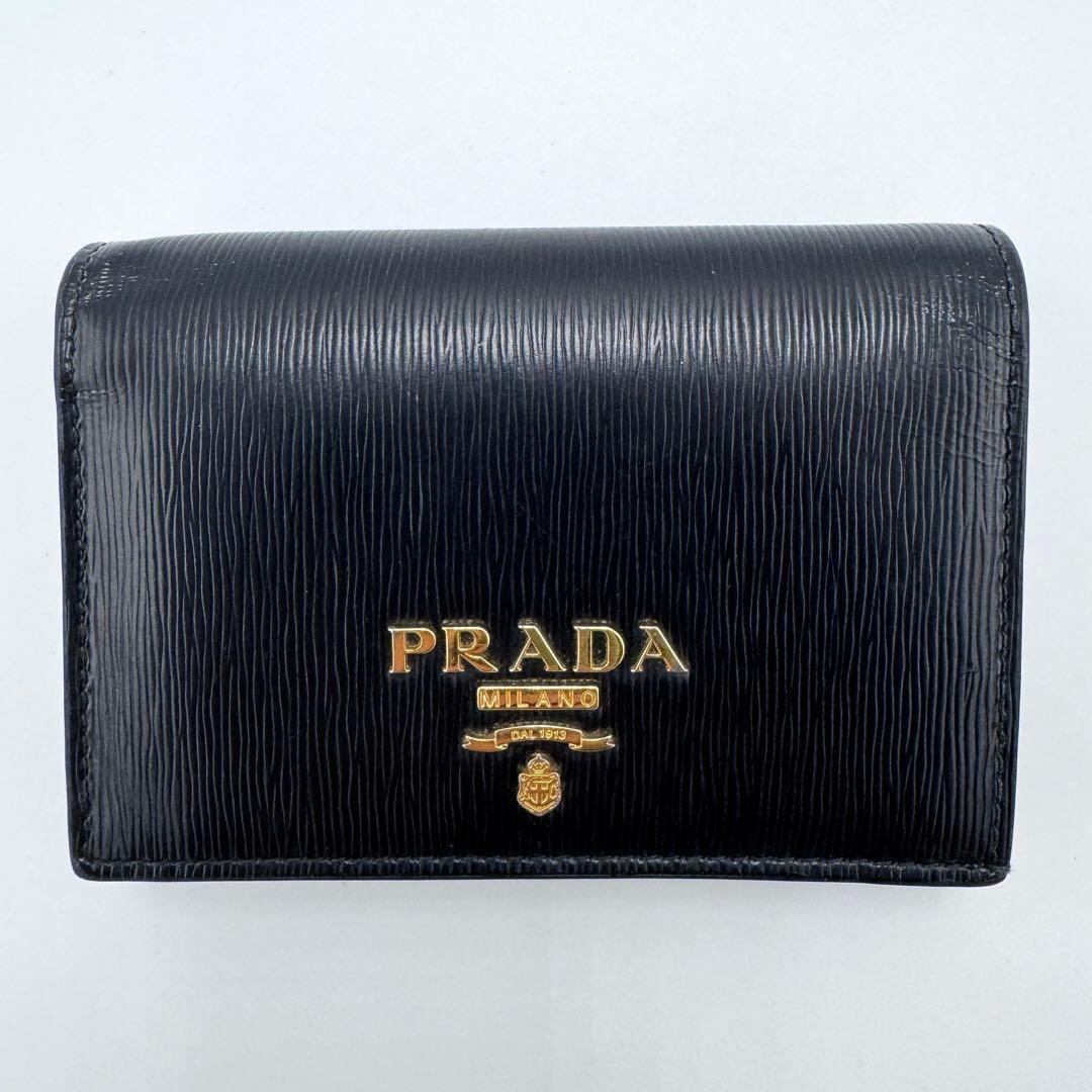 No.421 レア希少カラー☆美品☆PRADA プラダ サフィアーノ メタル 二つ折り財布 1MV021 ブラック×レッド コンパクトウォレット レディース