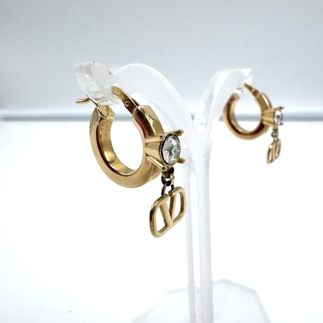 No.425 早い者勝ち☆新品同様☆ヴァレンティノ フープピアス Vロゴ メタル クリスタル ハギーピアス アクセサリー ゴールド レディース