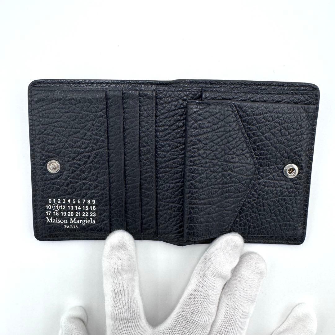 No.433 超人気【美品】メゾンマルジェラ 4ステッチ 二つ折り財布 バイフォールド ポッパーウォレット 二つ折り財布 ブラック メンズ レディース ユニセックス