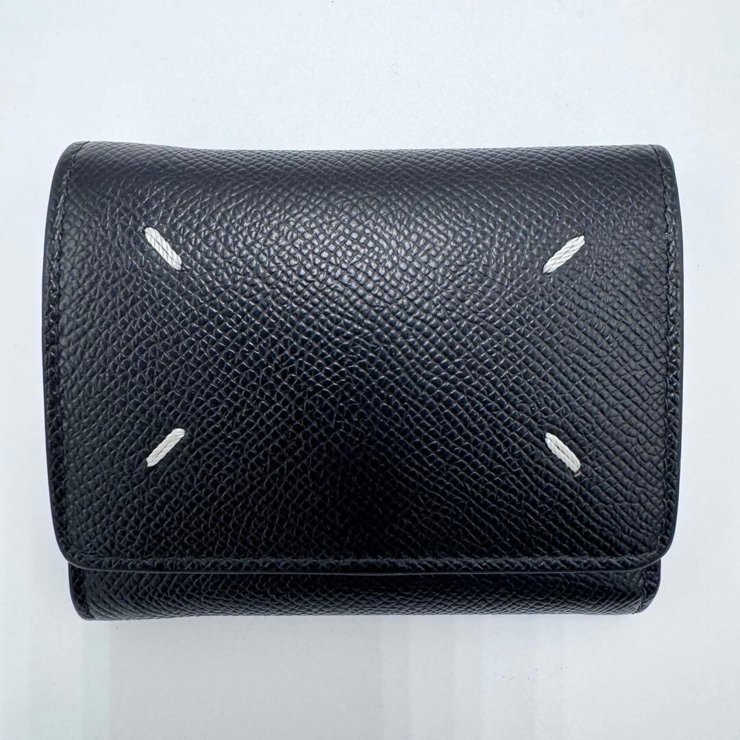 No.446 超人気☆【美品】メゾンマルジェラ 4ステッチ 三つ折り財布 ブラック トライフォールド ブラック メンズ レディース ユニセックス