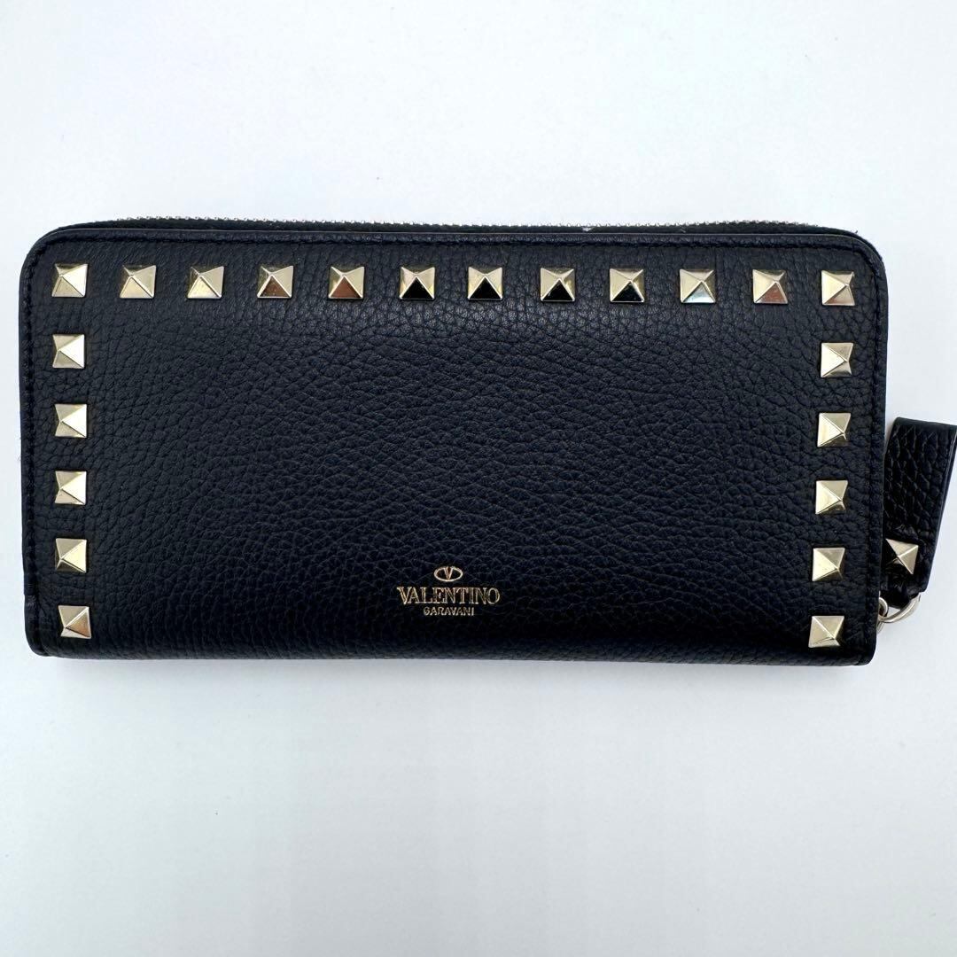 No.448 早い者勝ち☆【超美品】VALENTINO ヴァレンティノ ロックスタッズ ジップウォレット 長財布 ブラック レディース ユニセックス