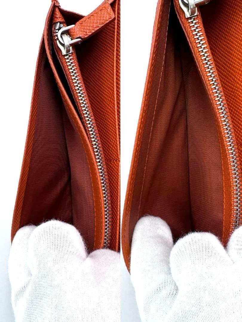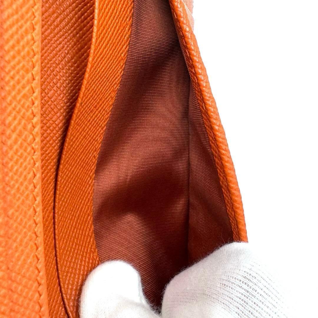 No.454 希少カラー【超美品】PRADA サフィアーノ 長財布 2MV836 ブラック×オレンジ トライアングル ロゴ バイカラー メンズ ユニセックス