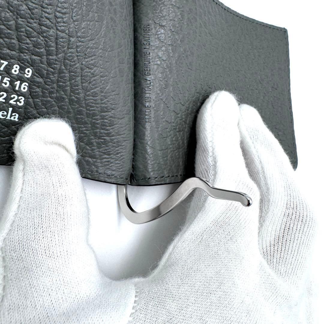 No.457 新品同様☆超美品☆メゾンマルジェラ 4ステッチ マネークリップ 小銭入れ付 グレー シボ革 コンパクトウォレット 希少カラー メンズ レディース ユニセックス