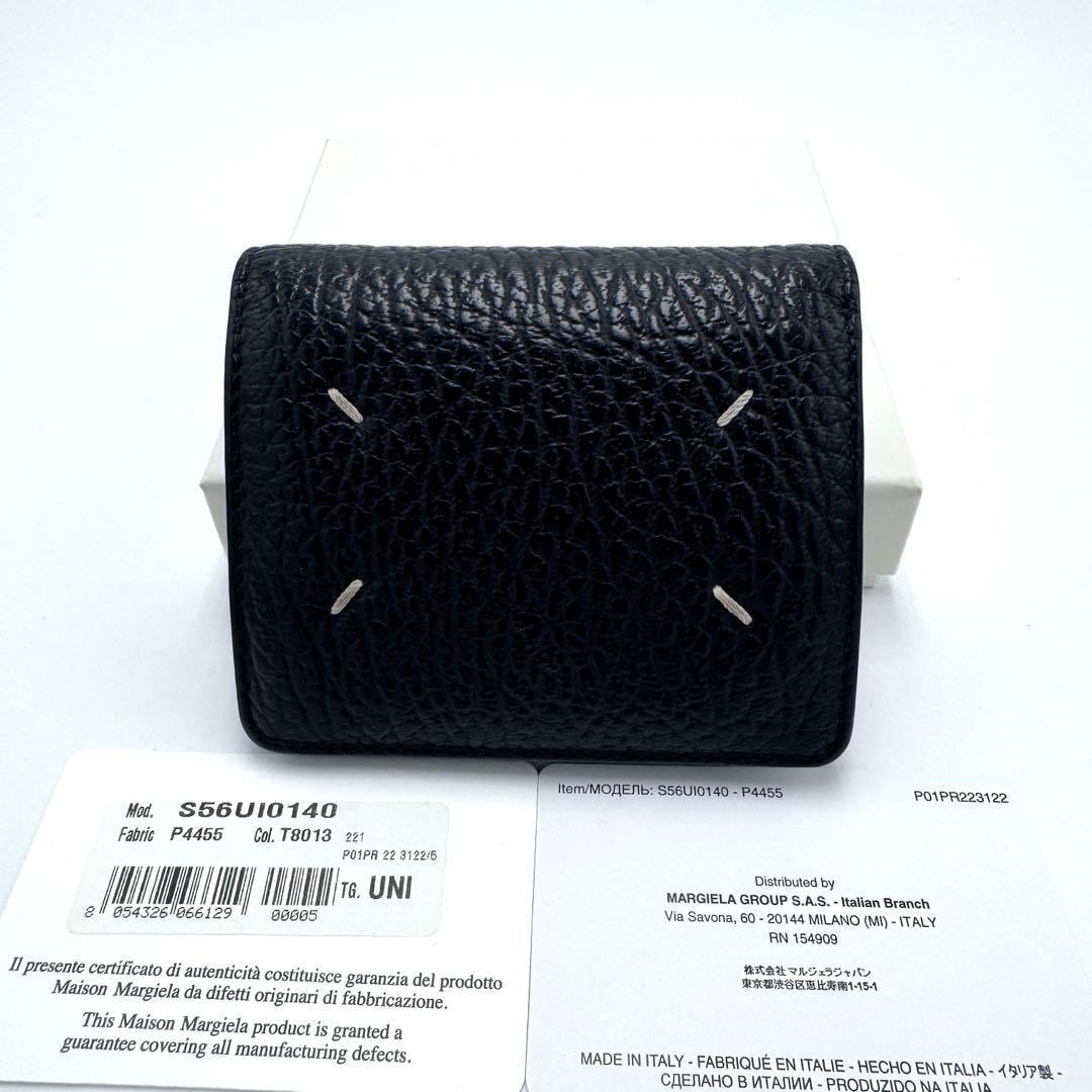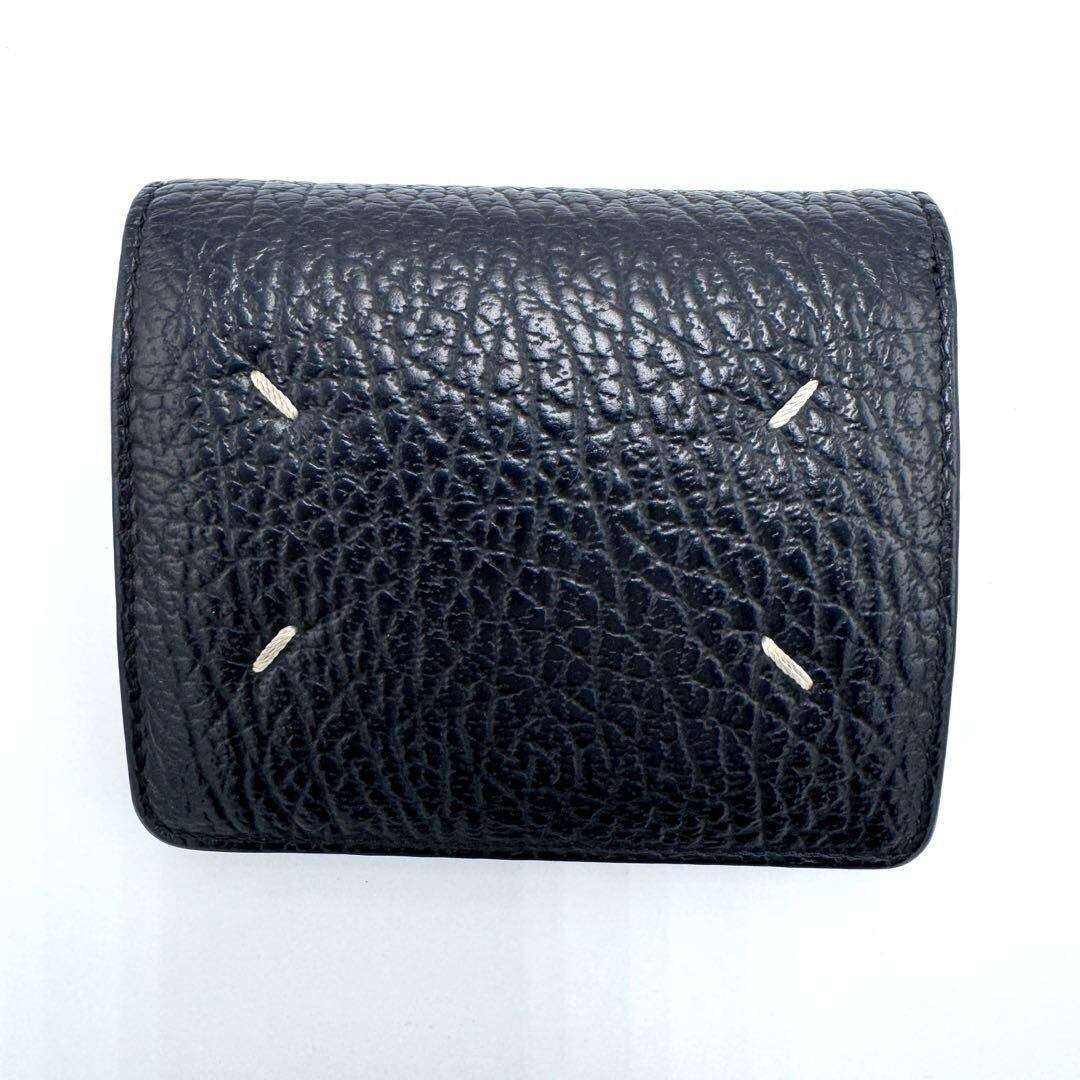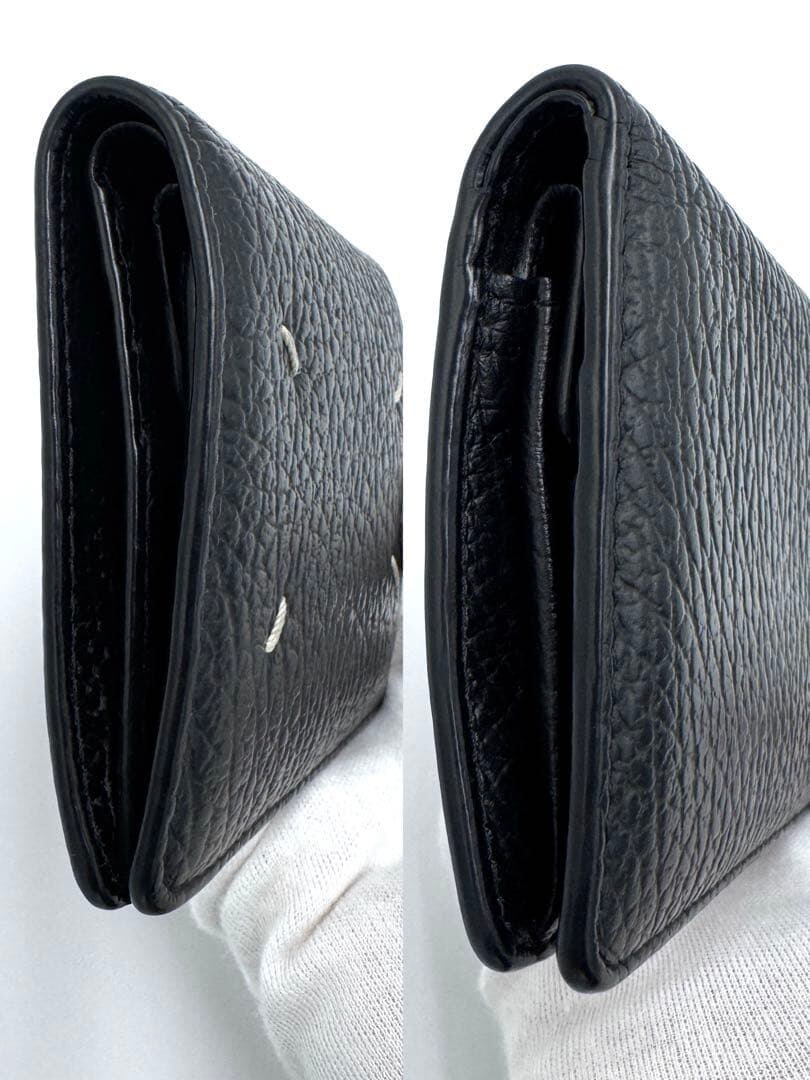 No.464付属品完備 美品☆メゾンマルジェラ 4ステッチ 二つ折り財布 バイフォールド ポッパーウォレット シボ革 ブラック RFID メンズ レディース ユニセックス