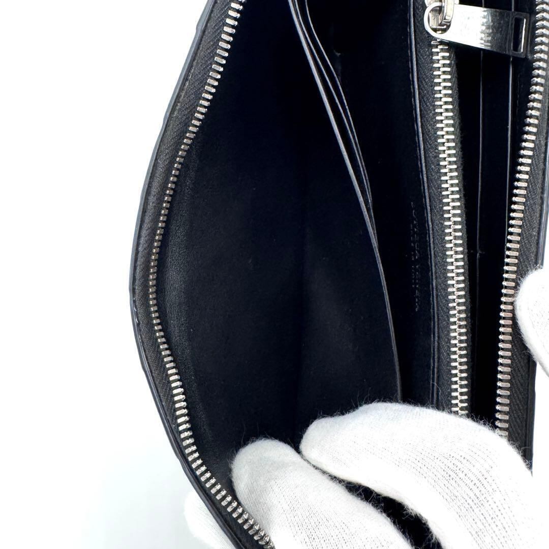 No.469 希少レア☆【超美品】ボッテガヴェネタ マキシイントレチャート 長財布 ラウンドジップウォレット ブラック RFID有 メンズ レディース ユニセックス