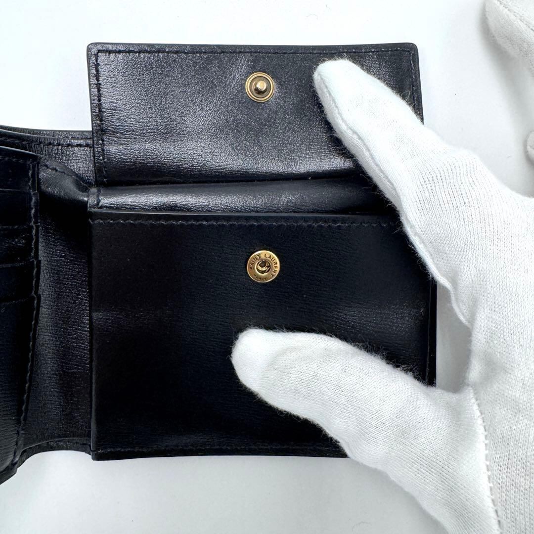 No.471 早い者勝ち【超美品】サンローラン 二つ折り財布 小銭入れ付 コンパクトウォレット YSL ロゴ 610193 ブラック メンズ ユニセックス