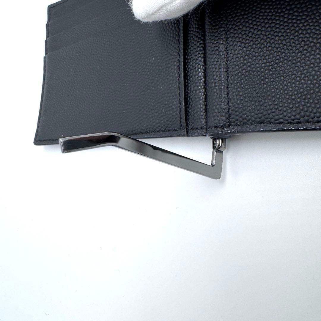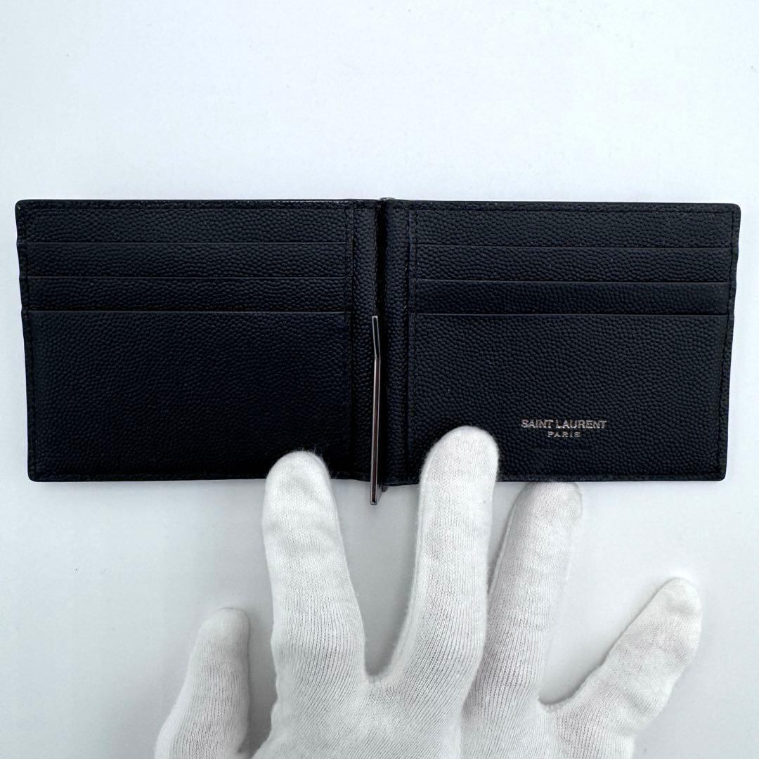 No.474 早い者勝ち【美品】サンローランパリ カサンドラ マネークリップ YSL ロゴ 485630 ブラック 二つ折り財布 レザー メンズ ユニセックス