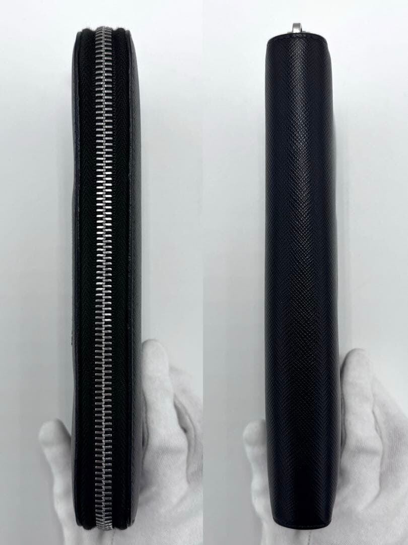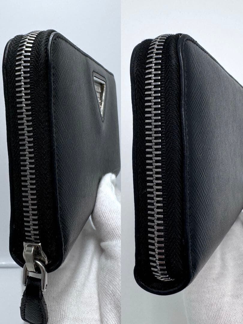 No.476 希少レアデザイン☆【美品】PRADA プラダ サフィアーノトライアングル 長財布 1ML506 ブラック シルバー 金具 RFID メンズ レディース ユニセックス