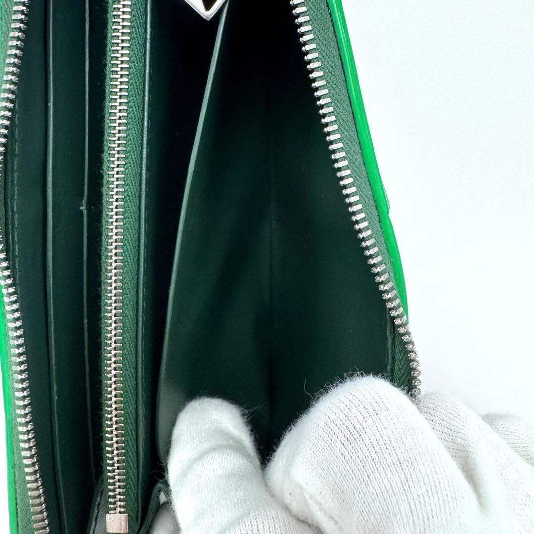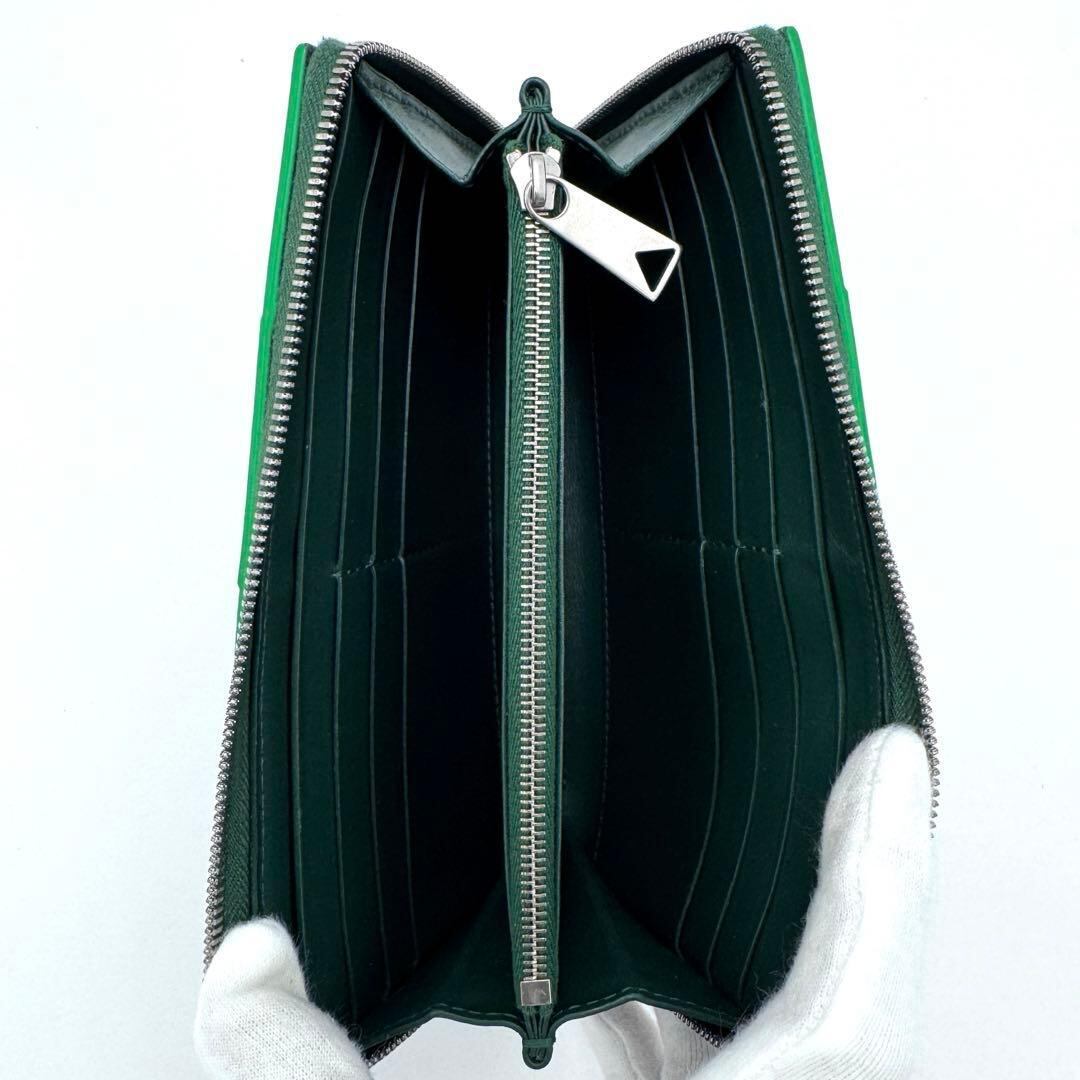 No.483 早い者勝ち☆ボッテガヴェネタ マキシイントレチャート カセット 長財布 ラウンドファスナー グリーン シルバー メンズ ユニセックス
