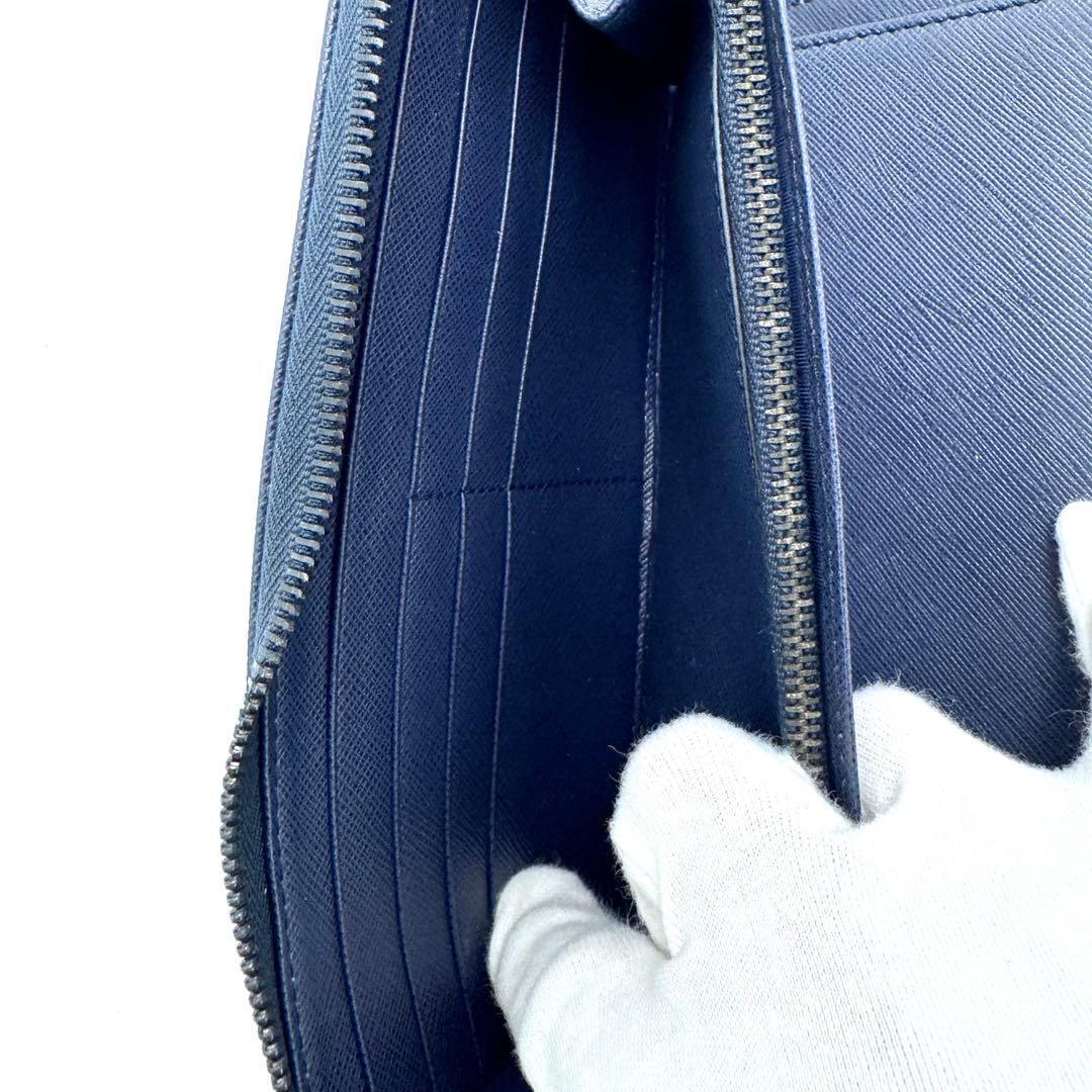 No.488 レア超美品☆PRADA プラダ オーガナイザー 長財布 2M1220 鉛筆付属 希少 トラベル ケース サフィアーノ メタル ネイビー メンズ ユニセックス