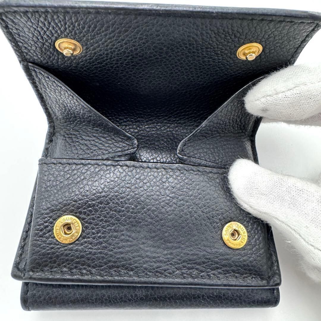 No.489 早い者勝ち☆サンローランパリ オリガミ タイニーウォレット 620287 カサンドラ YSL ロゴ 三つ折り財布 がま口 ブラック レディース