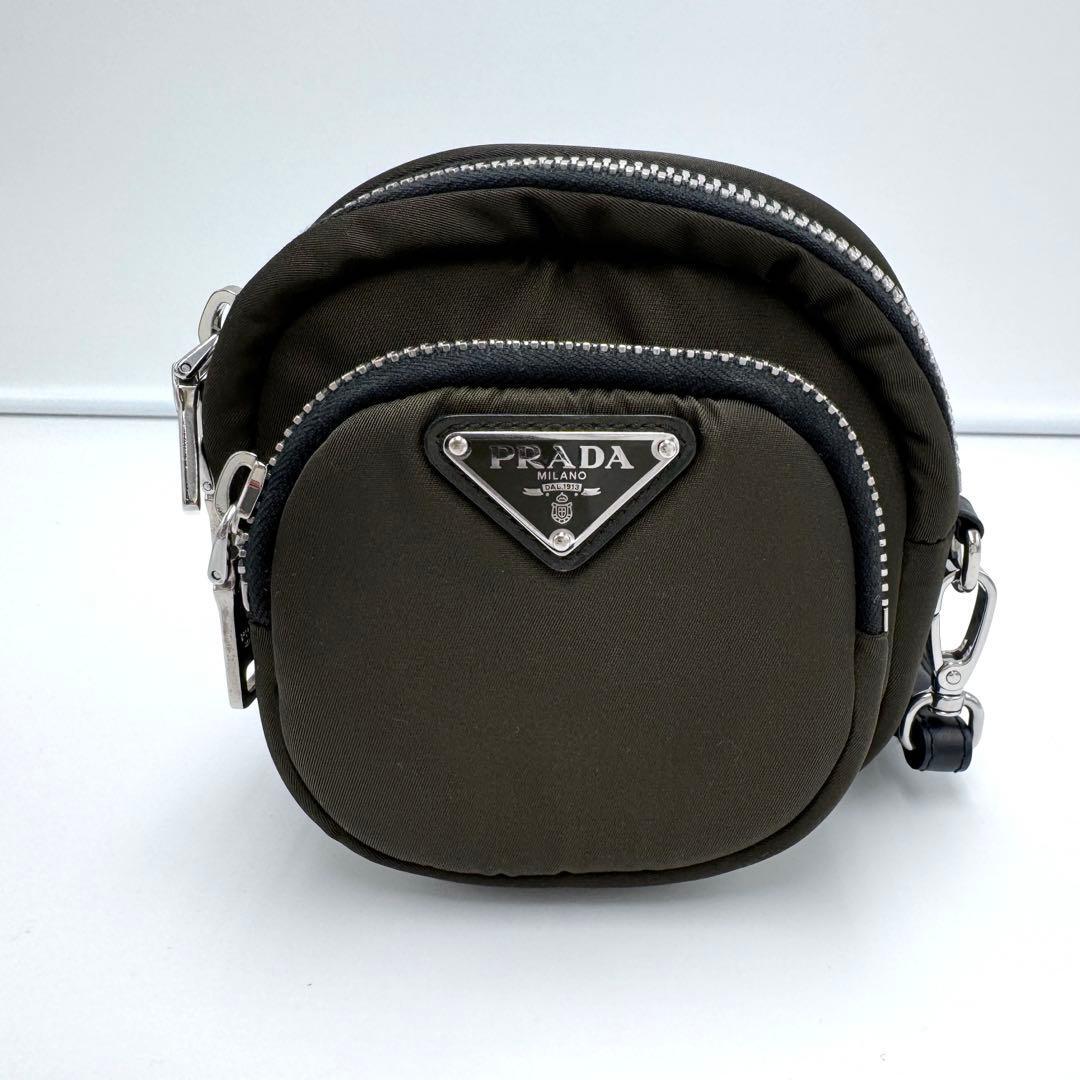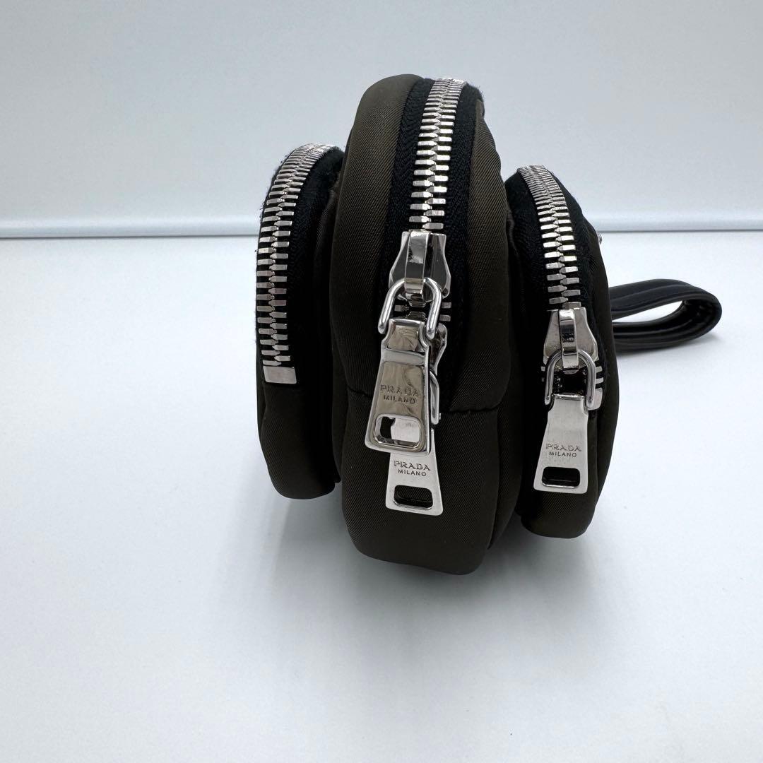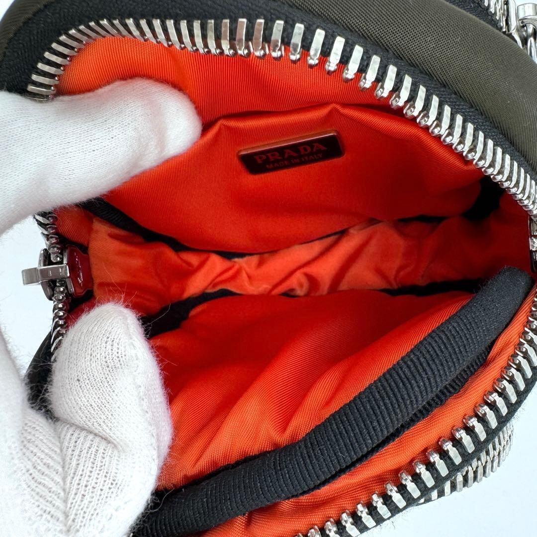 No.492 早い者勝ち【超美品】PRADA プラダ テスート ポーチ ラウンド 1NE027 ナイロン カーキ オレンジ 小物入れ 希少 メンズ ユニセックス
