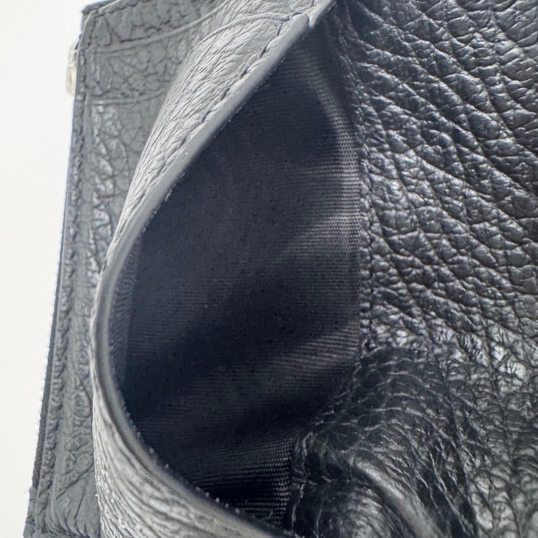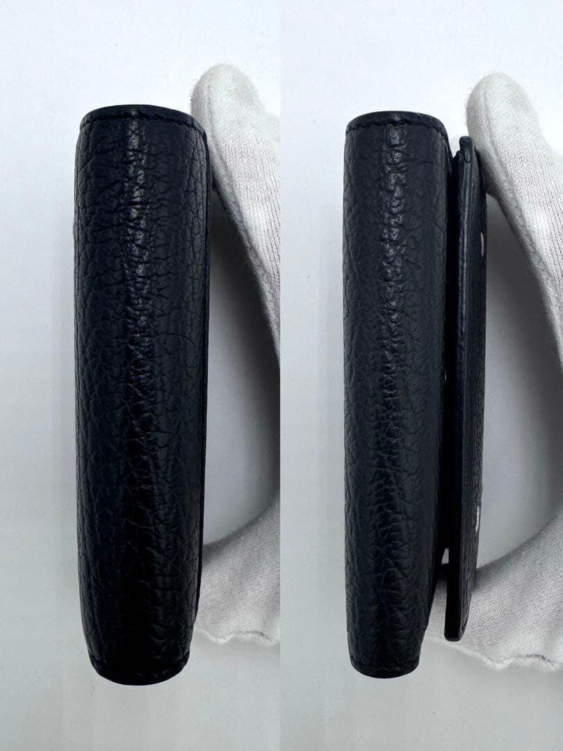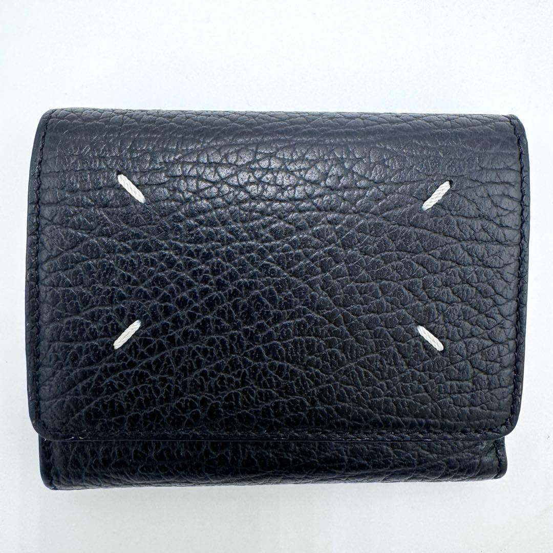 No.498 早い者勝ち☆【美品】メゾンマルジェラ 三つ折り財布 4ステッチ シボ革 コンパクトウォレット ブラック レザー メンズ レディース ユニセックス