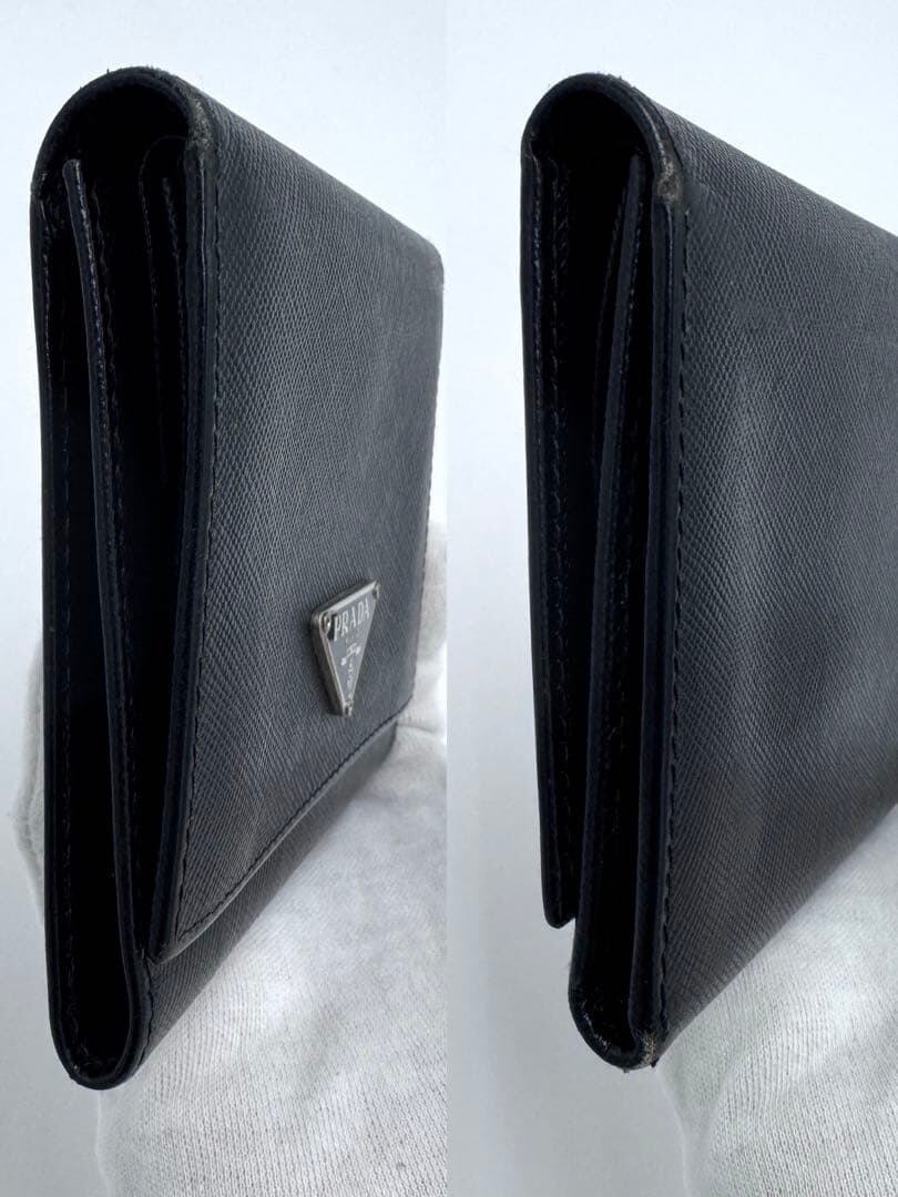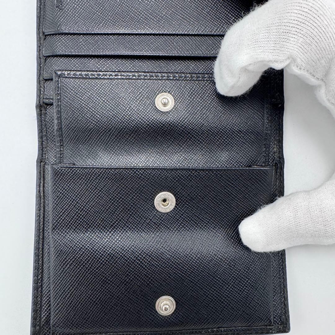 No.512 希少品☆早い者勝ち PRADA プラダ サフィアーノ 三つ折り財布 M176A トライアングル ロゴ ブラック メンズ レディース ユニセックス