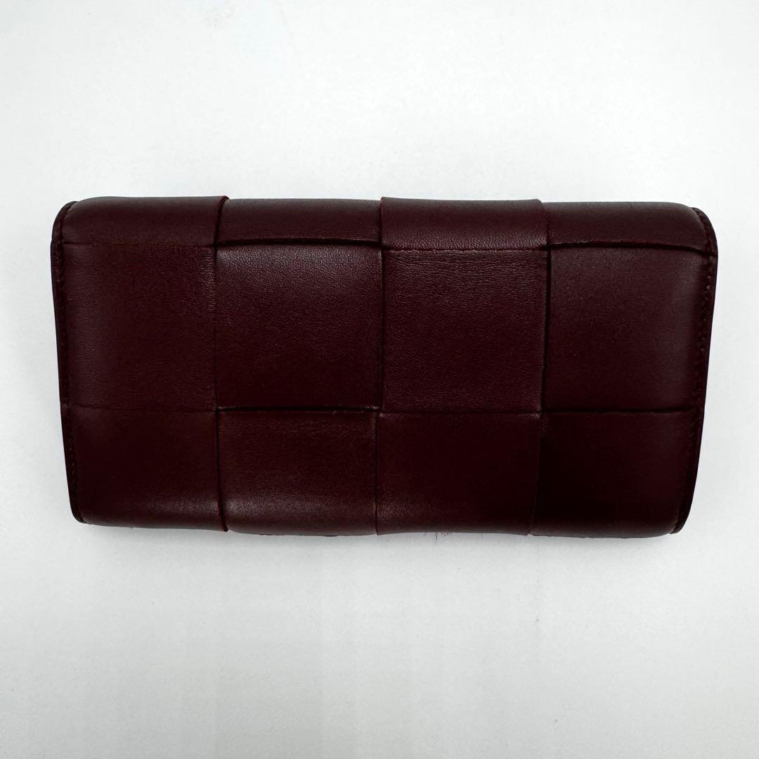 No.516 希少カラー☆ボッテガヴェネタ マキシイントレチャート カセット 長財布 ラージフラップウォレット バーガンディ RFID有 レディース