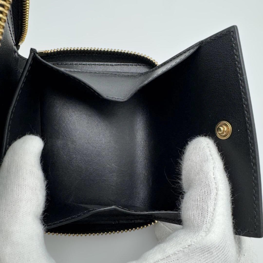 No.521 入手困難☆超美品☆CELINE セリーヌ 二つ折り財布 スモール ジップウォレット エッセンシャル コンパクトウォレット ブラック ゴールド レディース ユニセックス
