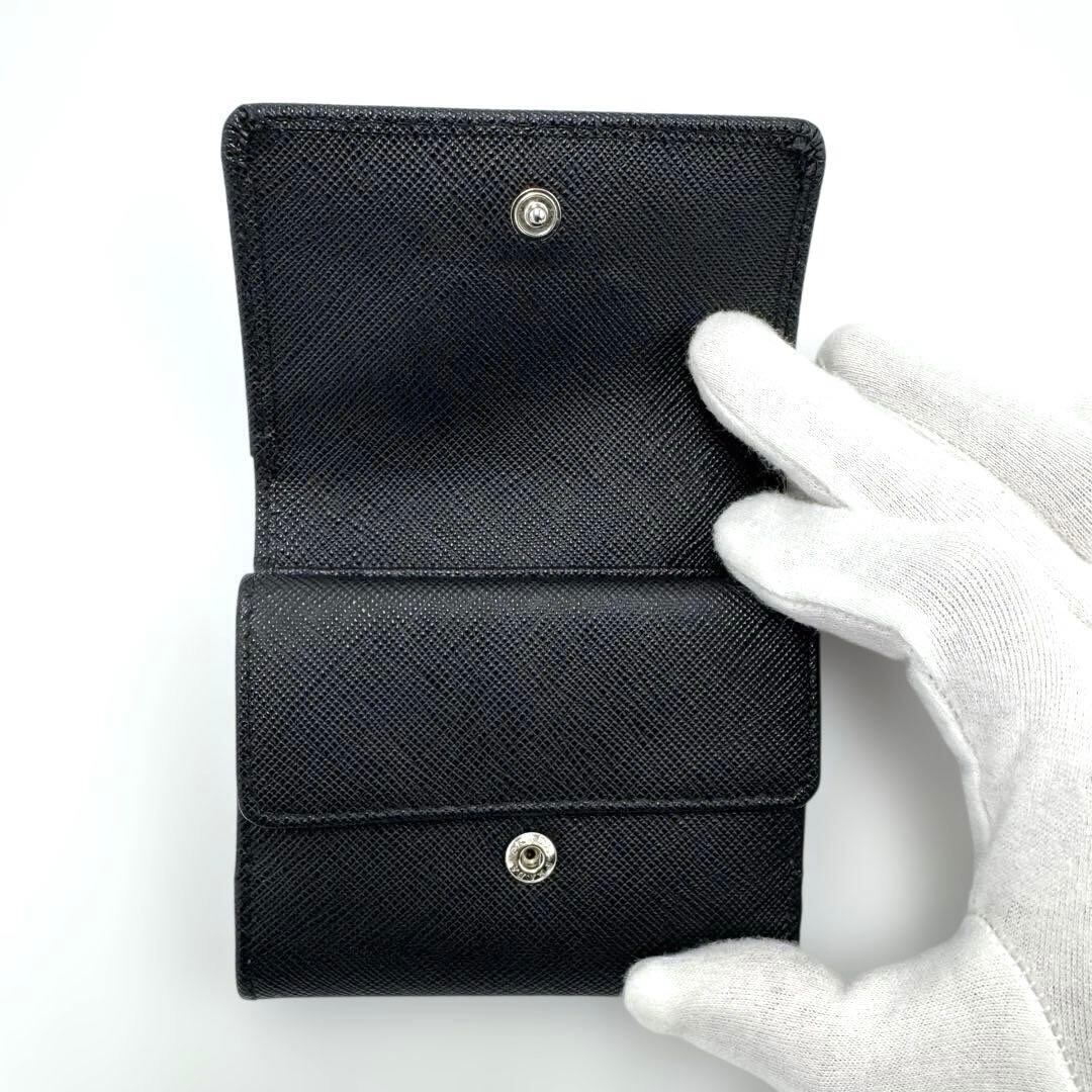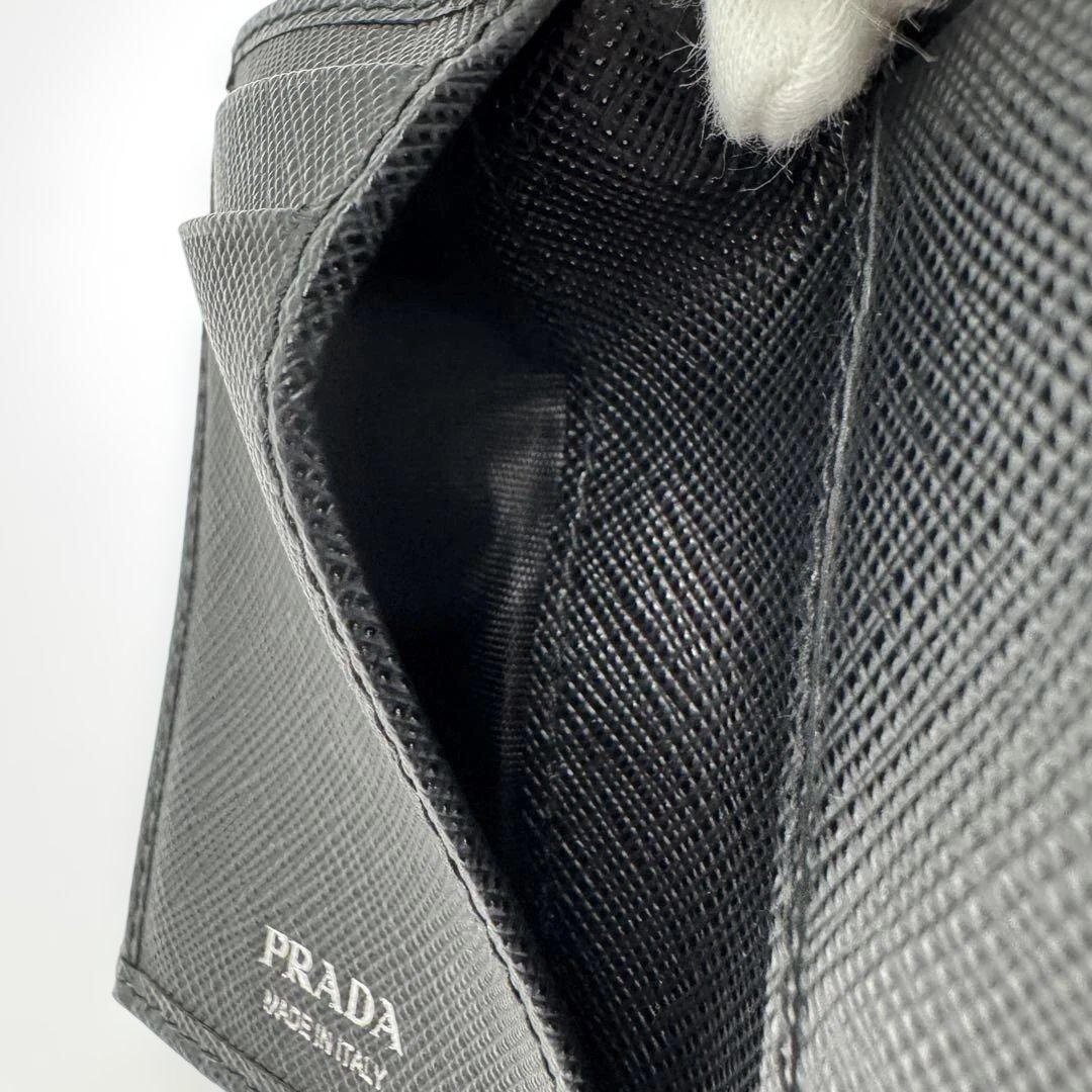 No.522 早い者勝ち☆美品☆PRADA プラダ サフィアーノ トライアングル 三つ折り財布 1MH043 コンパクトウォレット ブラック シルバー RFID有 メンズ レディース ユニセックス