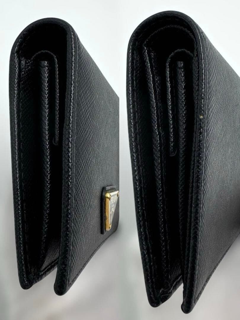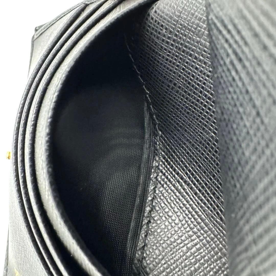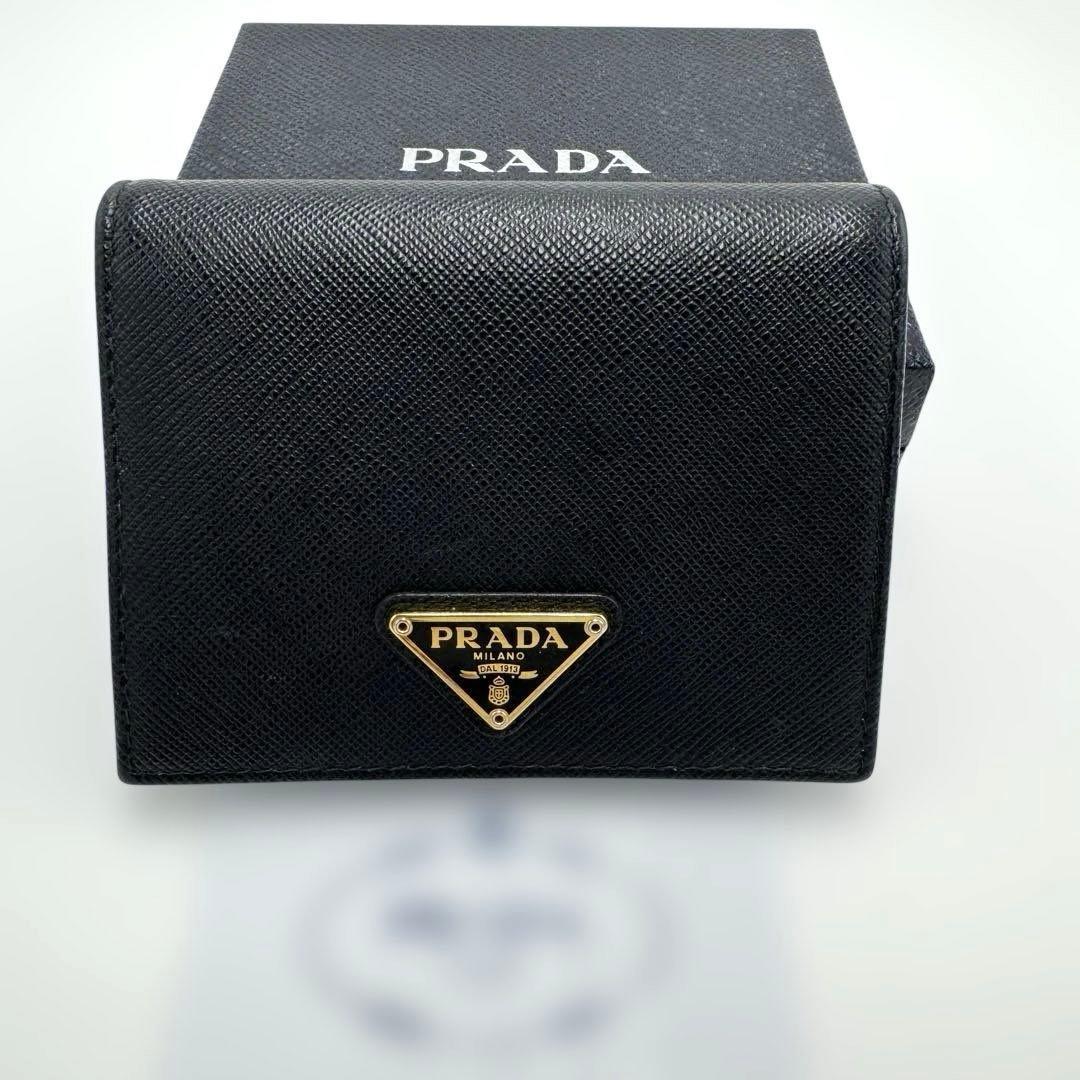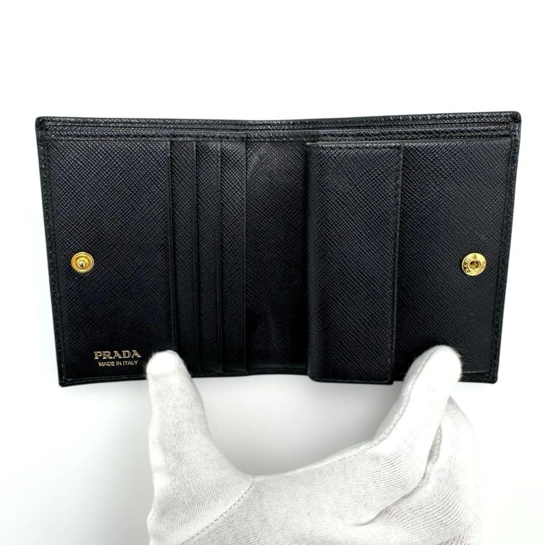 No.523 超人気☆美品☆PRADA プラダ サフィアーノメタル 二つ折り財布 1MV204 トライアングル ロゴ ブラック ゴールド 金具 レディース ユニセックス