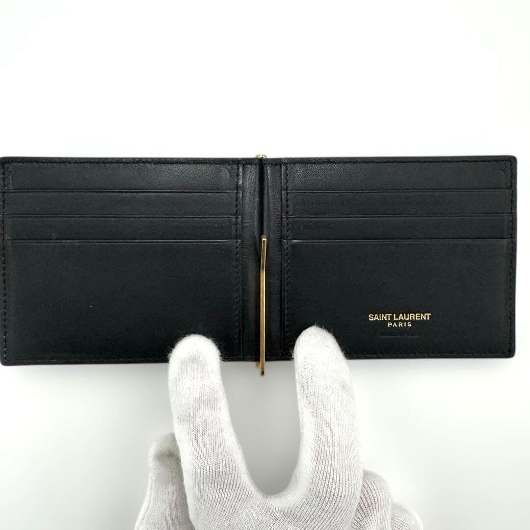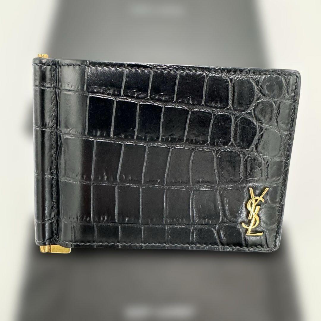 No.530 超人気☆サンローラン マネークリップ クロコ型 カサンドラ ビルクリップウォレット YSLライン 二つ折り財布 607738 ユニセックス